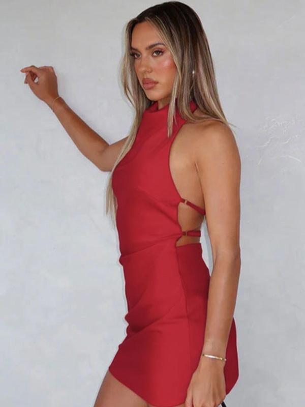 New Year Satin Backless Halter Dress, Sexy Slim-Fitting Party Dress, Eye-Catching for Women, Perfect for Night Out