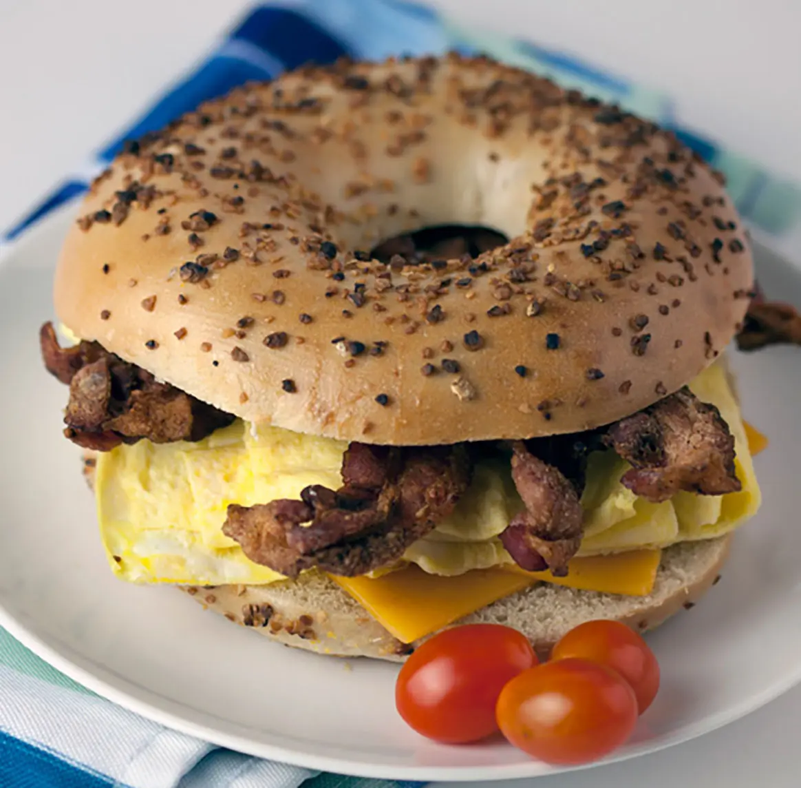 Of course the health benefits of garlic are well known, and a Garlic Bagel from New Yorker Bagels stands well on its own, adorned with cream cheese, lox, or butter, yet also works as the foundation of a very special sandwich.