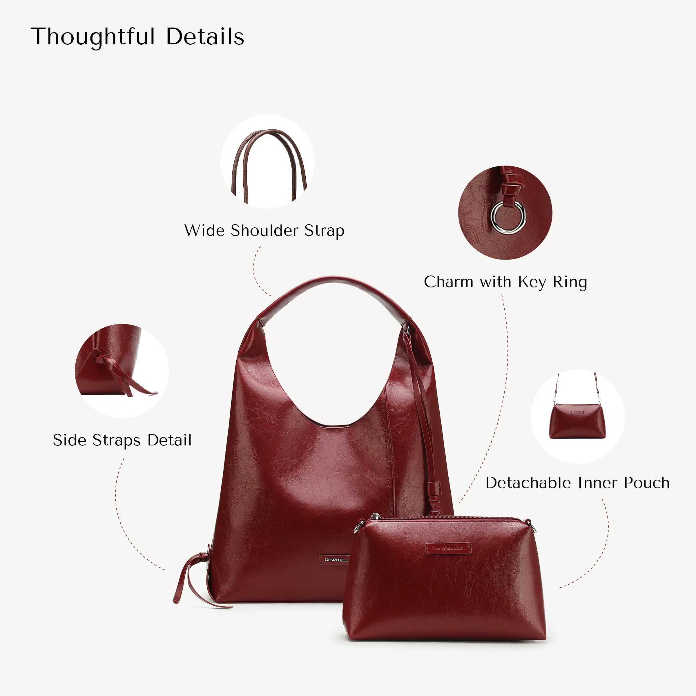 ·Detachable Inner Pouch: Two bags in one, perfect for quick trips or travel.