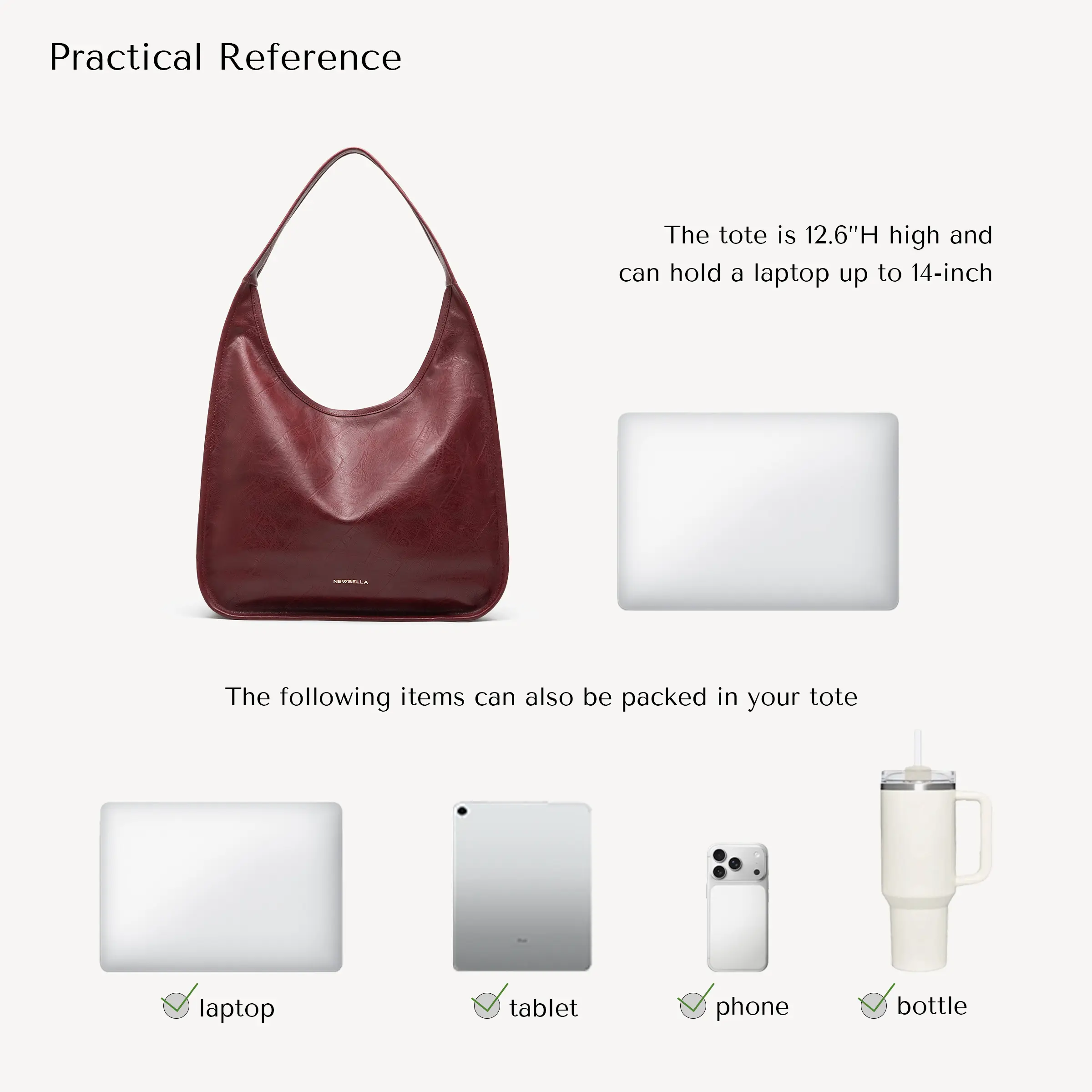 Size: 18.9"W4.72"H17.32"D (48*12*44 cm). This handbag is your versatile companion for everyday adventures. Its design complements various outfits, making it a must-have accessory. Experience the blend of style and practicality with NEWBELLA Luna Pro.