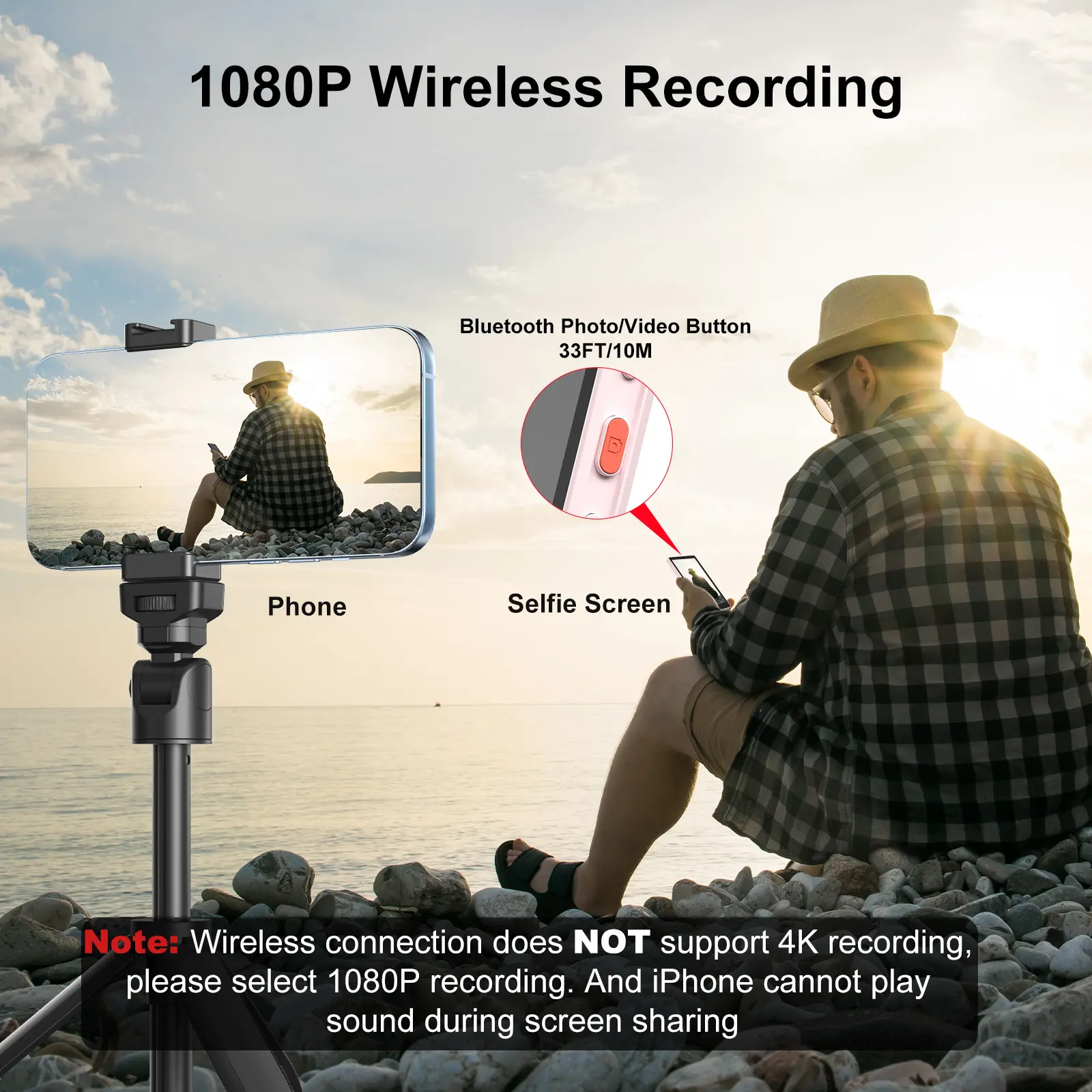 ·【Important Note】Our Phone Monitor Screen has 2 video recording modes: 4K 30fps Wired Recording and 1080P Wireless Recording. During Wired 4K 30fps Recording, the phone can play sounds when screen share. Please Note: When use Wireless Recording, please make sure to select 1080P recording. Our product compatibles with iOS 9 above systems, including iPhone 11/12/13/14/15/16, etc.(Please confirm the phone model before purchase)