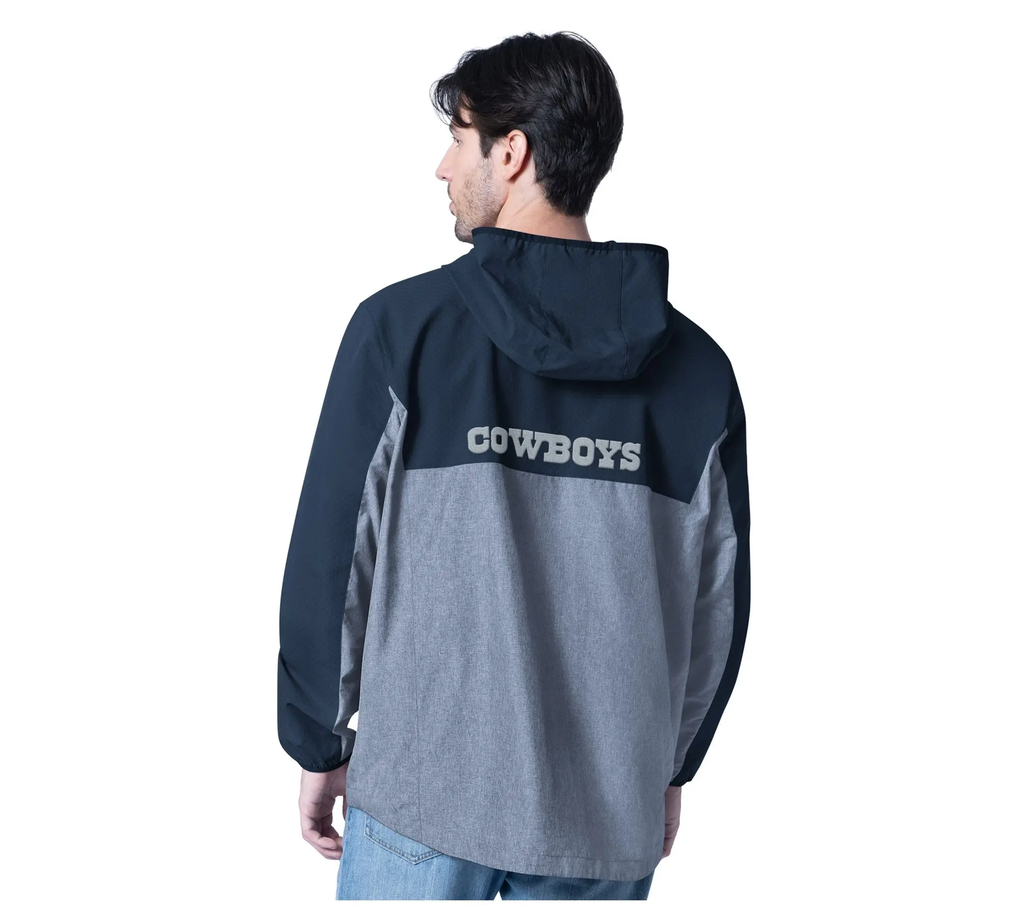 NFL Officially Licensed Dallas Mens LightweightFull Zip Jacket features team color upper body and hood, and heather grey color lower body.Zippered pockets at side body.Embroidered team logo at left chest, and embroidered team wordmark at back.Available in sizes XS-4X.Content: shell 100%polyester,lining 100%polyester. Exclusive of decoration. Care:MWCWLC/DC/UONCBWN/TDL/RP/CIIN/DNIE. Imported.