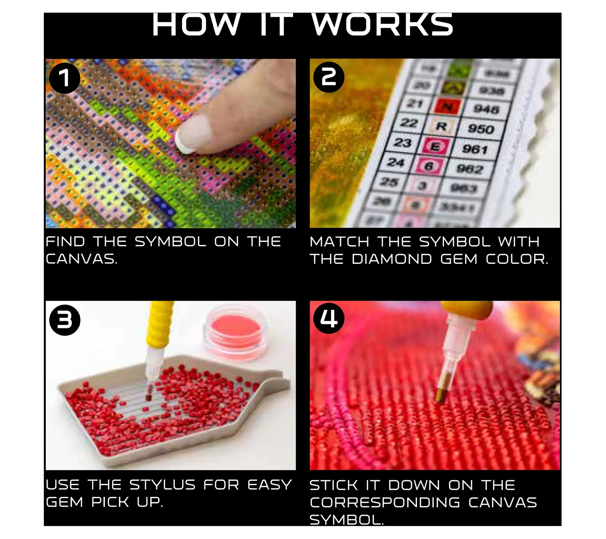 ·Includes color printed fabric, diamond gems pre-sorted by color, stylus, comfort grip, craft tray, wax caddy, and easy-to-follow instructions