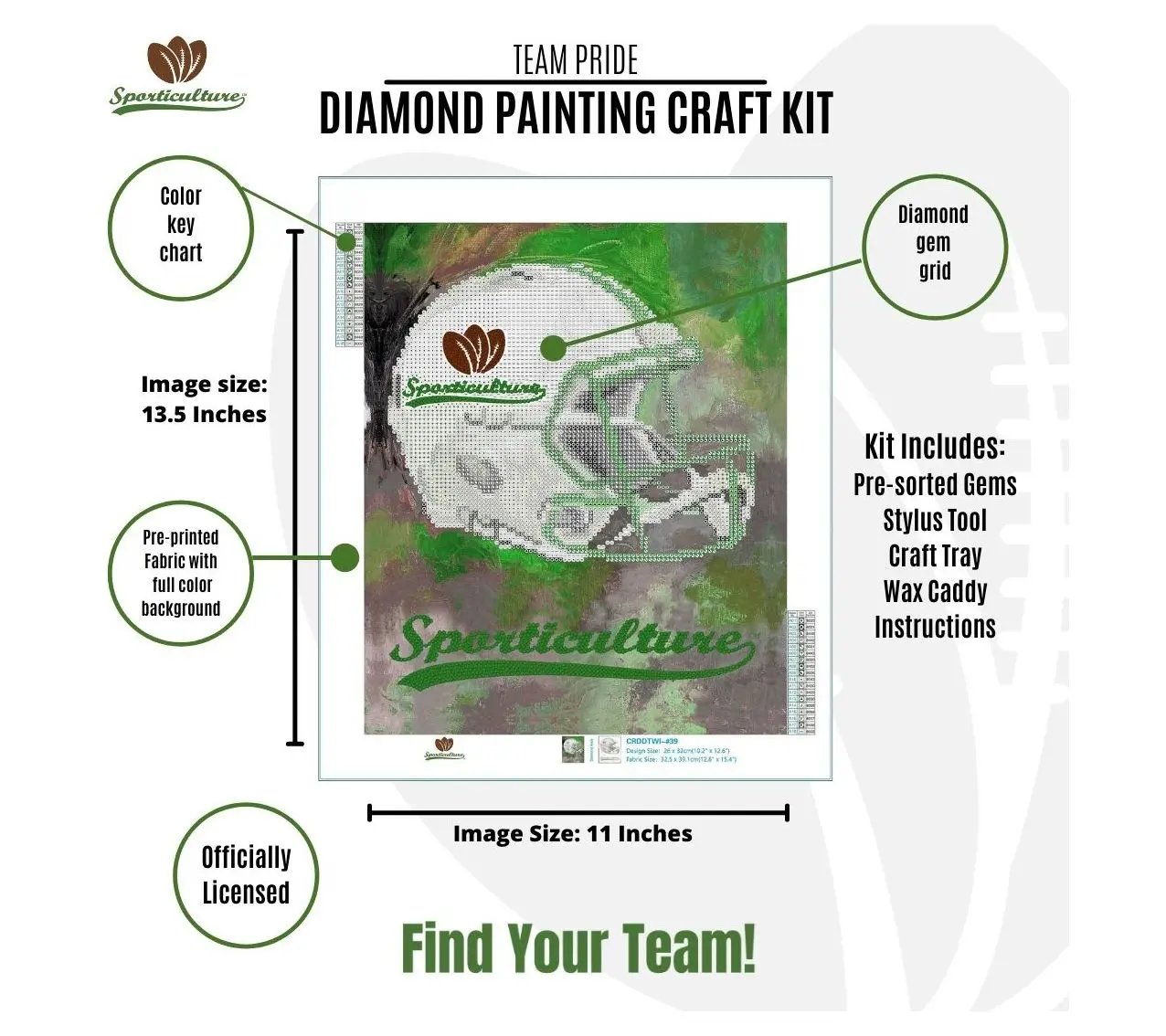 Create a stunning tribute to your favorite NFL team with this Sporticulture diamond painting craft kit. This officially licensed kit includes everything you need to make a dazzling piece of fan art. Perfect for your fan cave, college dorm, home, or office, its a fun and creative way to show your team spirit. From Sporticulture.
