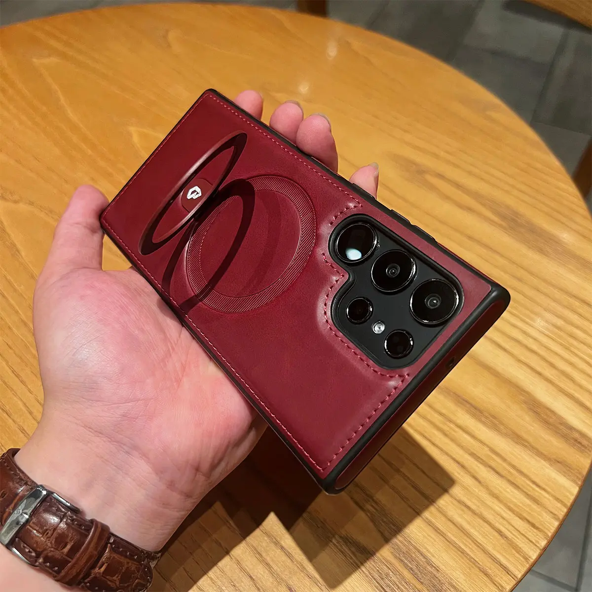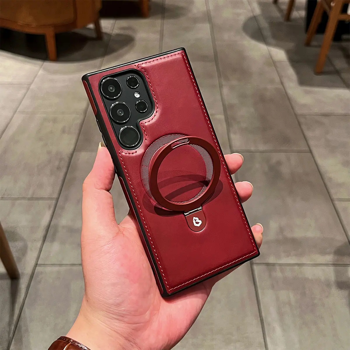 NganGee Leather Plastic Protective Case with Stand for Samsung S24Ultra S23Ultra S22Ultra S24+ S23+ S22+