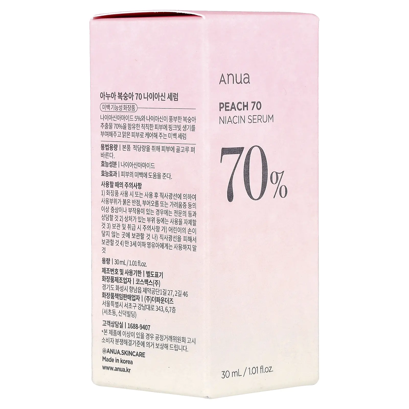 Anua Peach 70 Niacin Serum, 1.01 fl oz (30 ml)