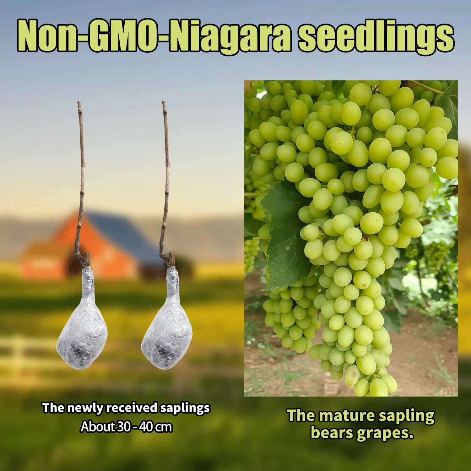 Niagara grapes are valued for their sweet, juicy berries and attractive green foliage. The vine has a climbing growth habit and can be planted directly in the ground or in large containers with adequate drainage and support. Its ornamental leaves and flavorful fruit make it suitable for decorative gardens as well as productive fruit-growing spaces.