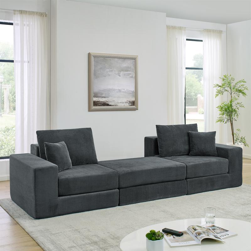 ‌Bullet Points‌ • ‌Deep Seat Comfort‌ - Spacious seating area + thick cushions, ideal for napping or movie nights • ‌Corduroy Durability‌ - Scratch-resistant fabric, easy to clean with hidden pet hair protection • ‌Flexible Layout‌ - Use as L/U-shape or split into love seat + chaise • ‌Ready-to-Use‌ - No assembly, unfolds instantly (cushions expand in 24-48 hours) • ‌VIP Shipping‌ - Priority processing for early orders, ships in 24hrs! Product Description‌ "Upgrade your small space with Niccae's modular cloud sofa! The deep seat design feels like a cloud, while the removable ottoman gives you extra seating or a comfy footrest. Corduroy fabric resists scratches and pet hair, making it perfect for pet owners. Ships fast from US warehouses, so you'll be relaxing in no time. PLEASE NOTE: