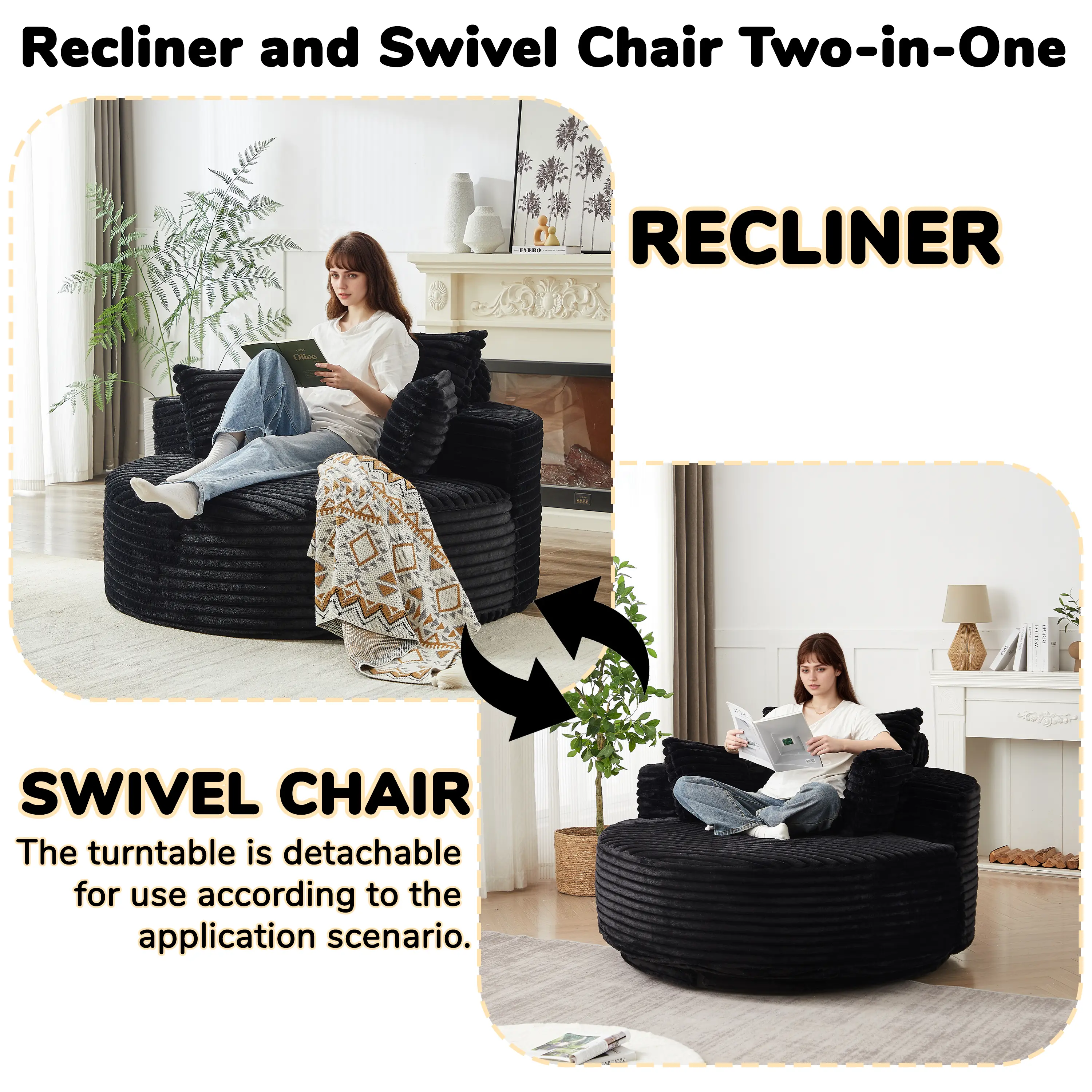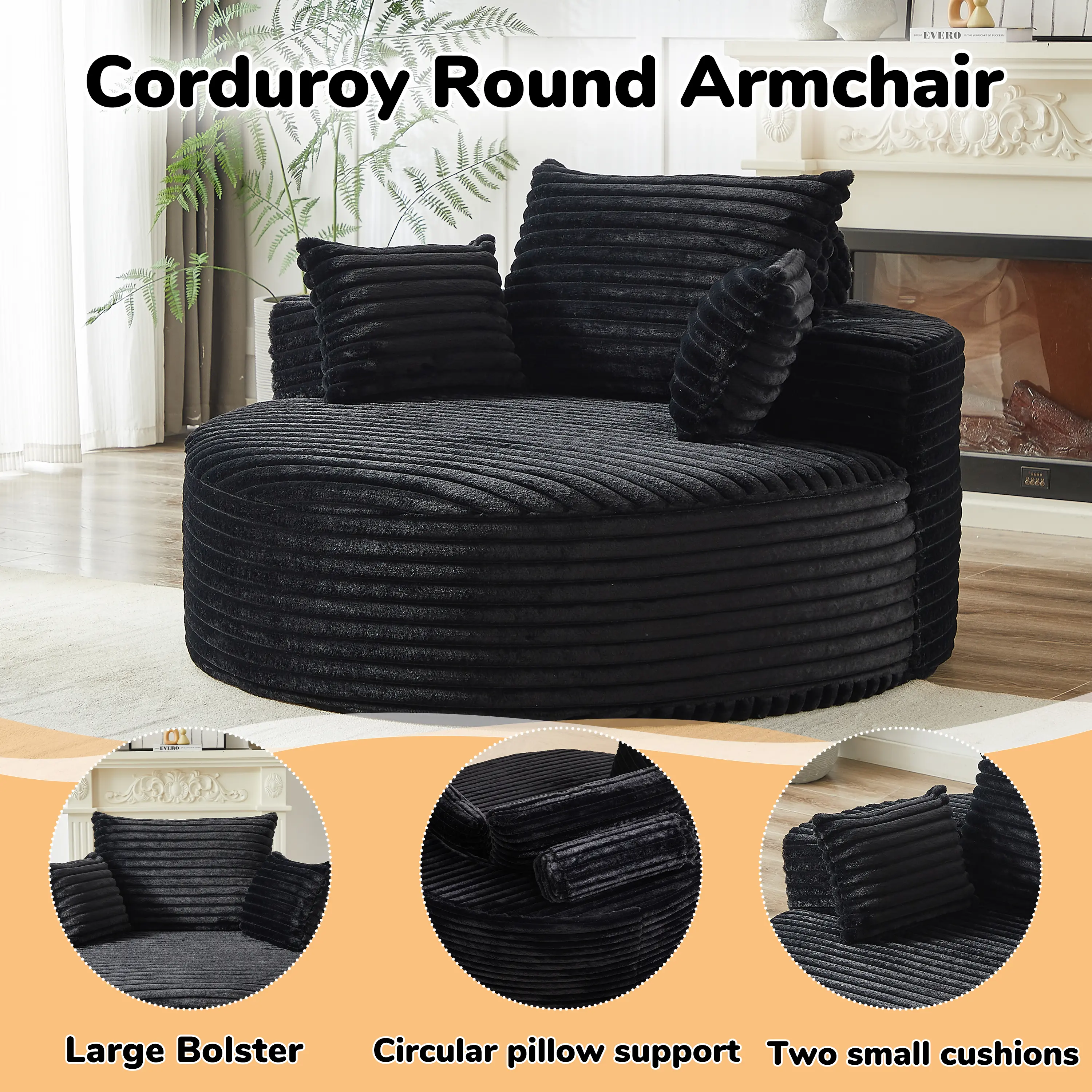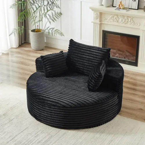 The Niccae 55''L Corduroy Foam Single Swivel Chair offers easy installation, a comfortable faux rabbit fur corduroy fabric, and a 360-degree swivel base for easy use. It is perfect for various living spaces and provides additional comfort with its backrest pillow design.