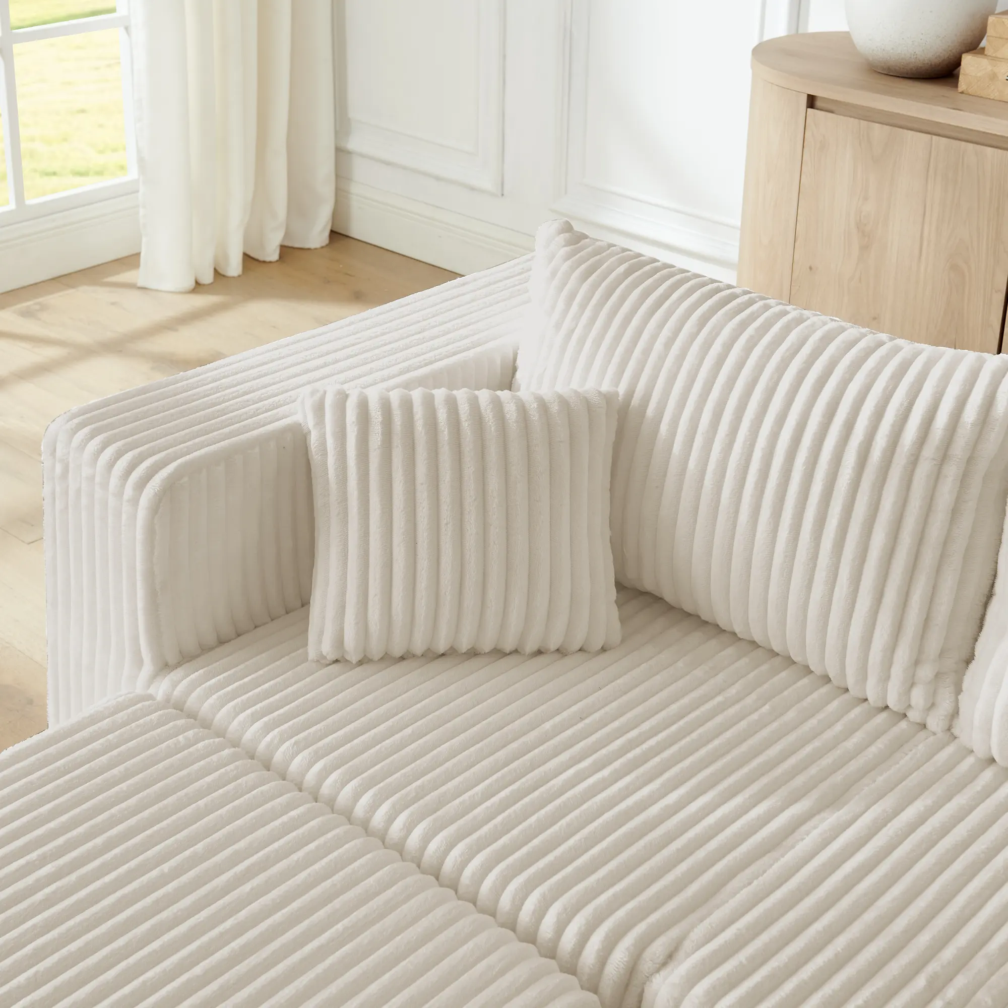 Experience cloud-like comfort with our high-density foam cushions that maintain their shape. The soft corduroy fabric is both luxurious and practical—resisting stains, pet hair, and daily wear. Designed for real life, not just showrooms.