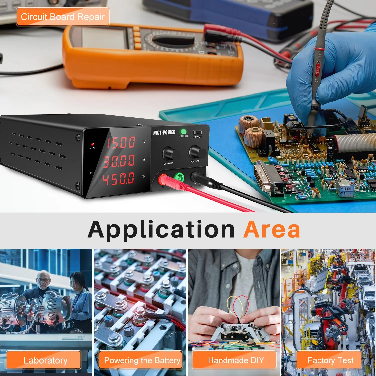 【High Power Output】: Delivers up to 450W, ensuring reliable power for various repair and testing applications.