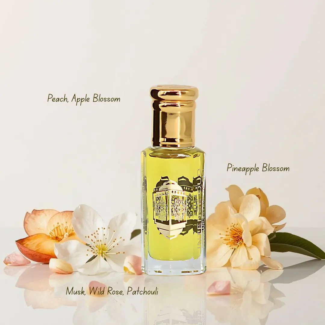 Madawi Oil opens with a fruity sweetness of peach and apple blossom. The heart introduces pineapple blossom, giving an exotic twist. Finally, musk, wild rose, and patchouli bring warmth and balance to the finish.