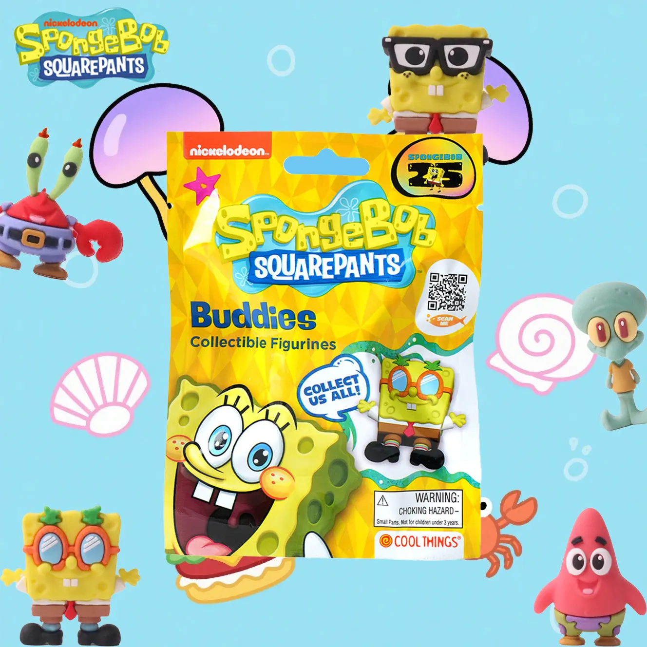 Dive into Bikini Bottom with this officially licensed SpongeBob SquarePants 3D Character Blind Bag! Each pack includes one randomly selected mini figurine featuring one of four classic characters: SpongeBob, Patrick, Mr. Krabs, or Squidward. With fun and expressive designs, these cute collectibles are perfect for decorating your room, desk, or shelf. A great surprise gift for SpongeBob fans of all ages!