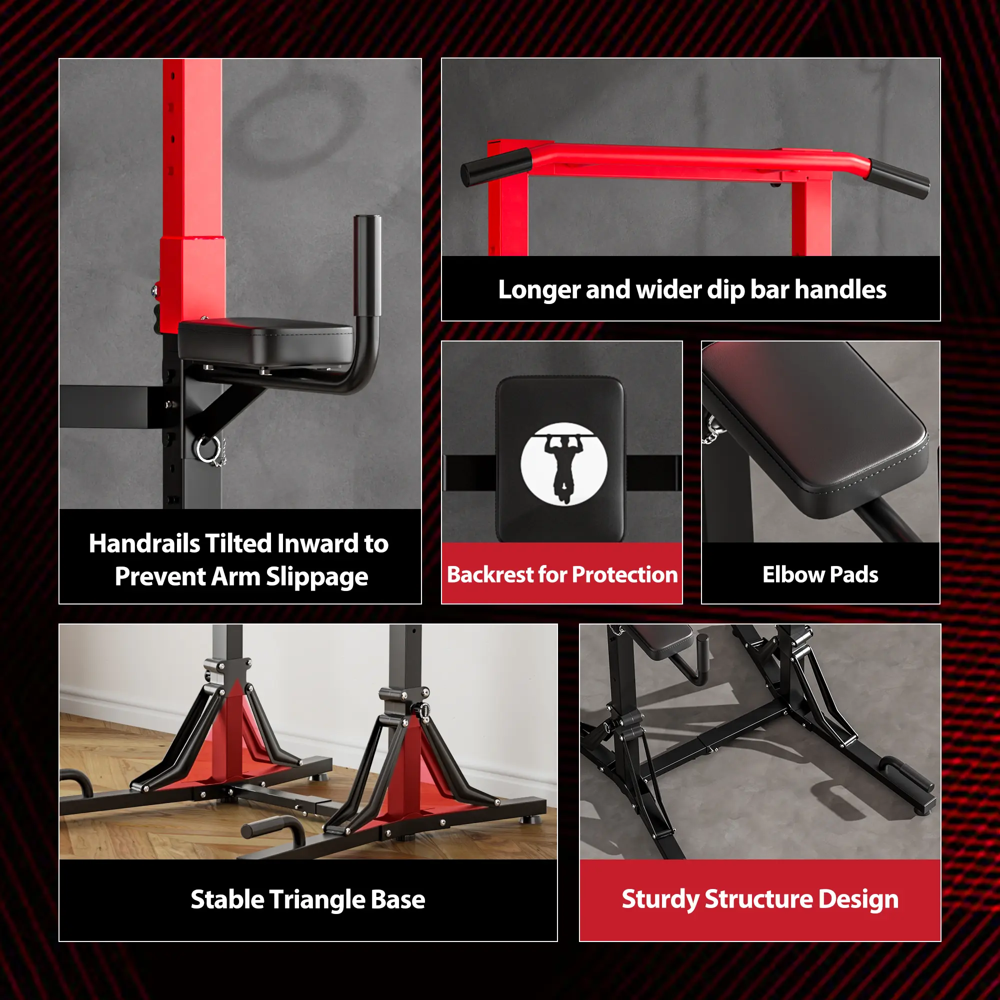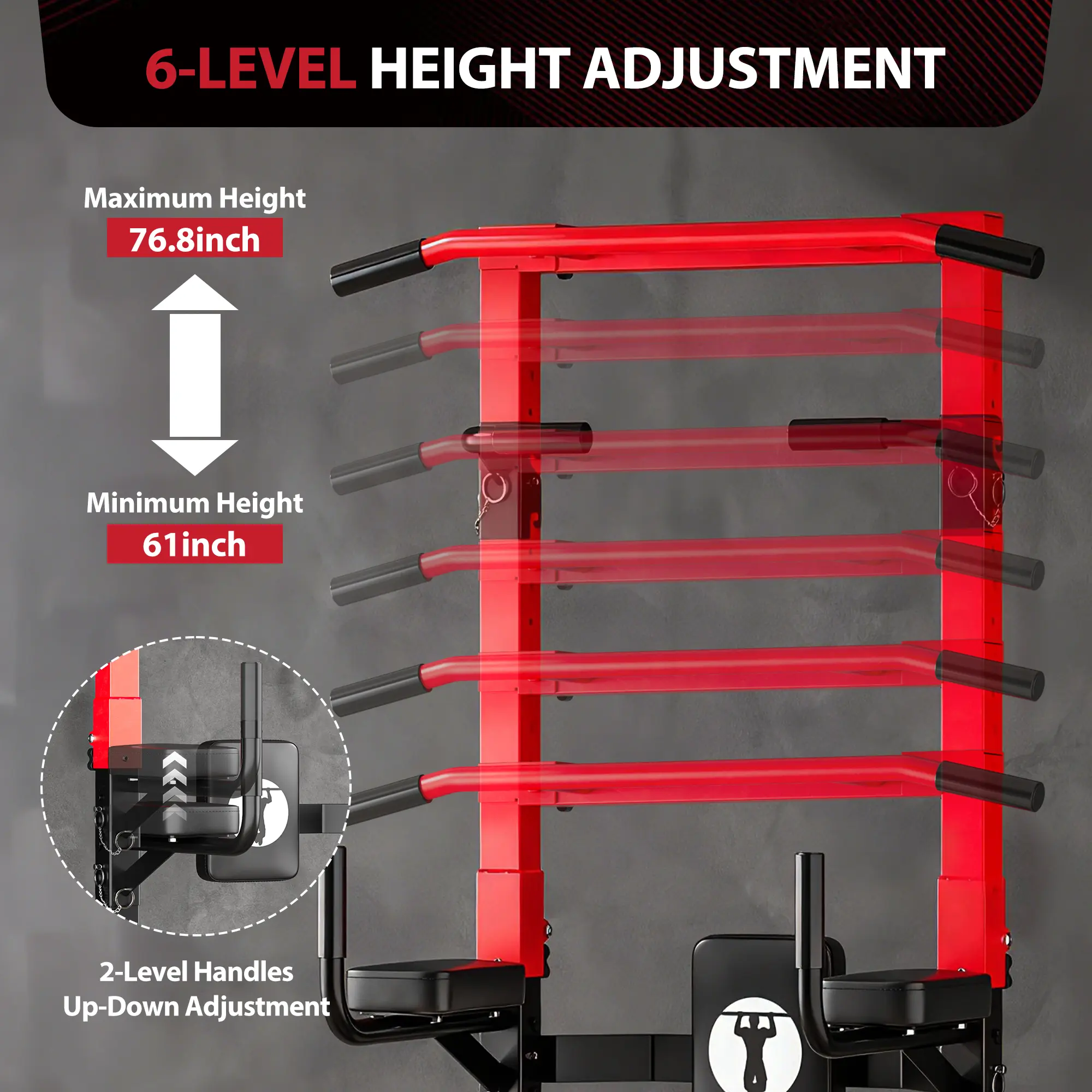 【Premium Comfort & Adjustability】Equipped with thick foam elbow pads and a padded backrest for comfort and support. The pull-up bar offers 6 height adjustments (158-217cm) to perfectly fit users of all sizes for optimal form.