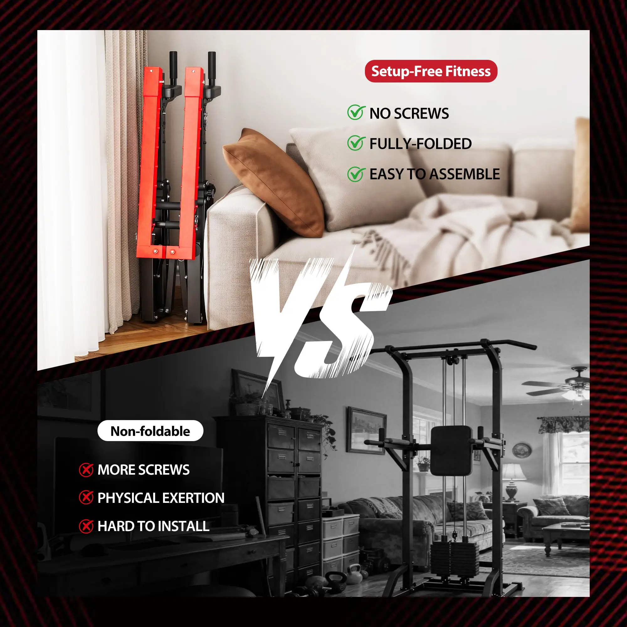 【Smart Space-Saving Design】The fully foldable frame requires no tools to set up or collapse. Store it flat against a wall or in a closet in seconds, making it the perfect fitness solution for apartments and small spaces.
