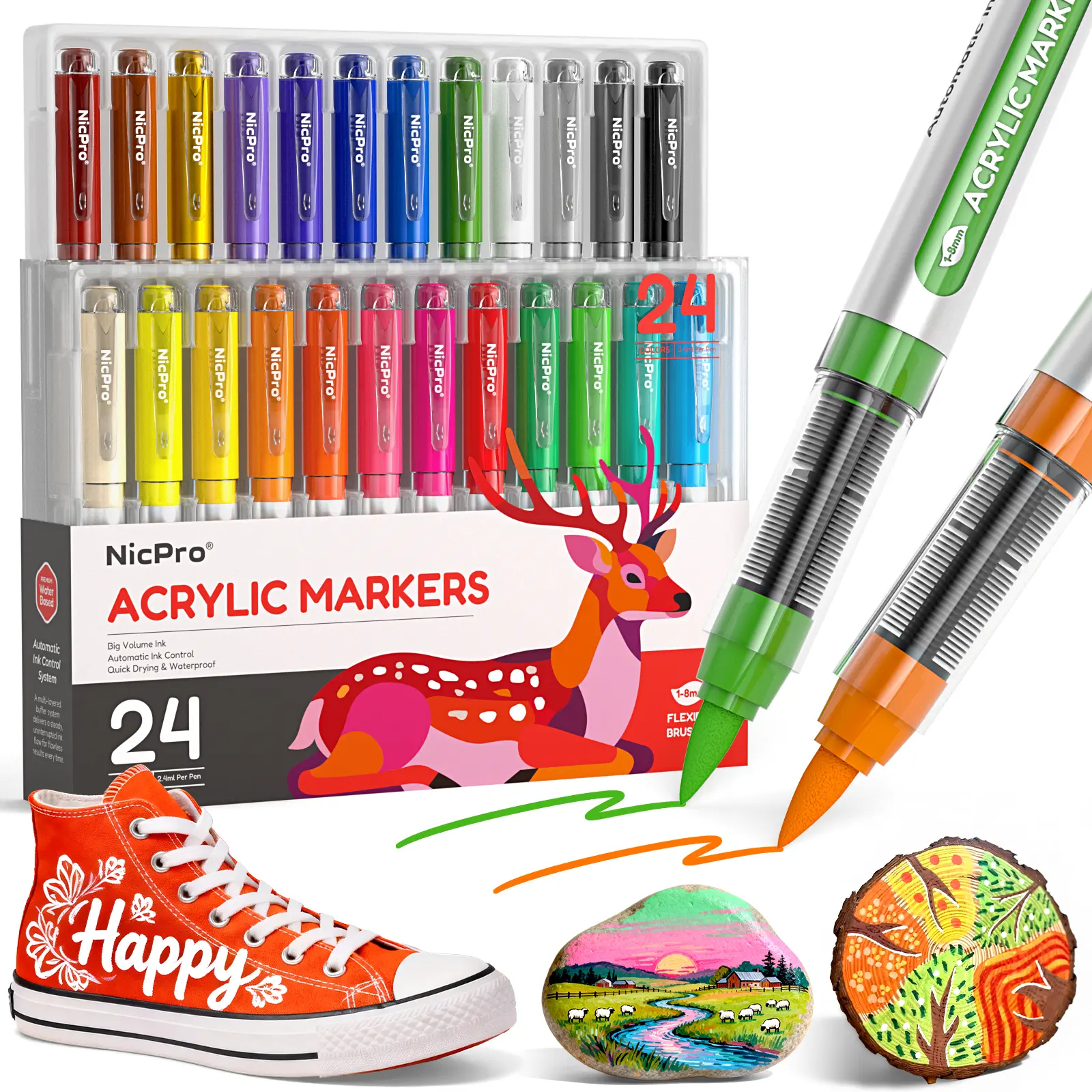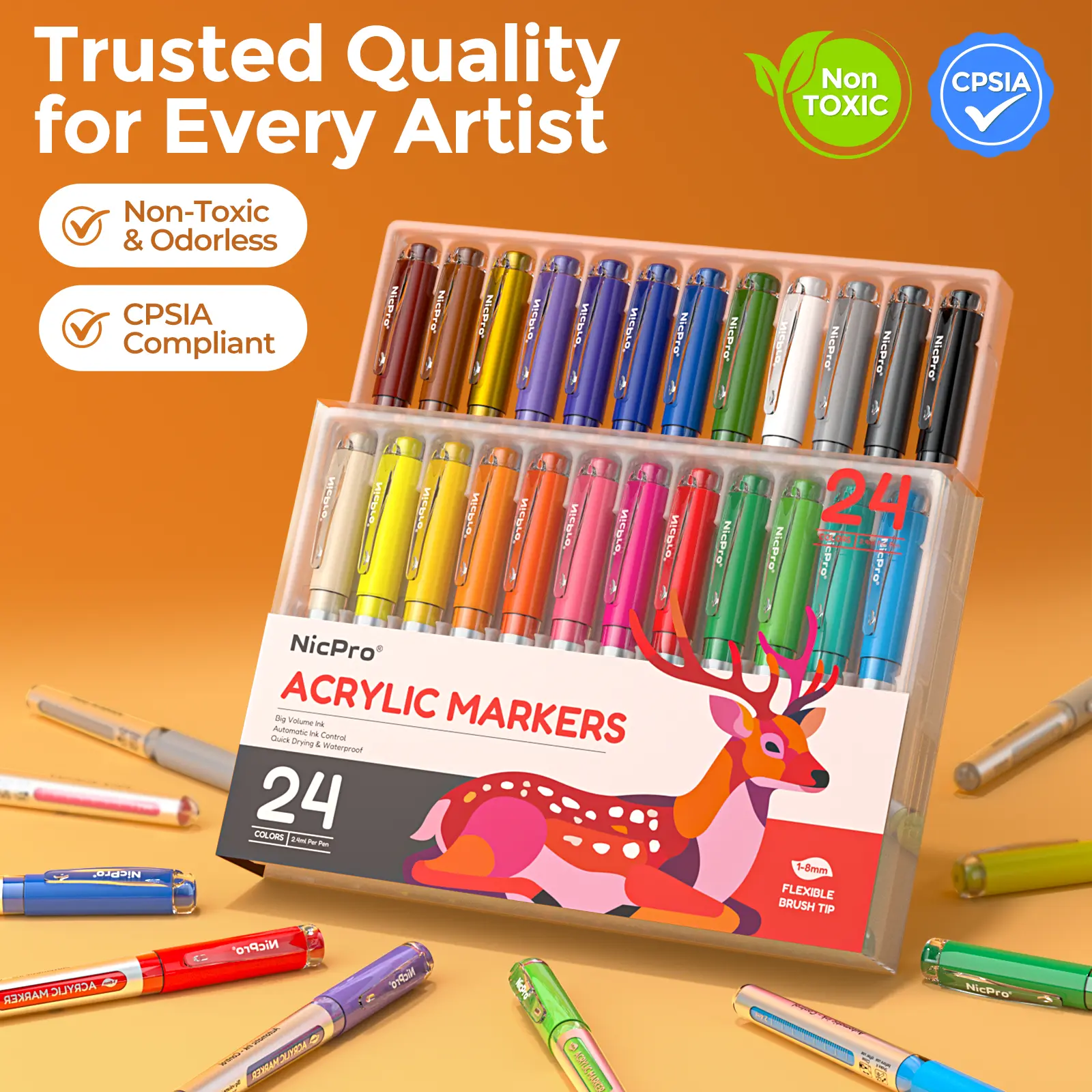 Each marker contains 2.4ml of premium water-based acrylic ink. This larger amount ensures long-lasting use and fewer refills during your creative sessions.