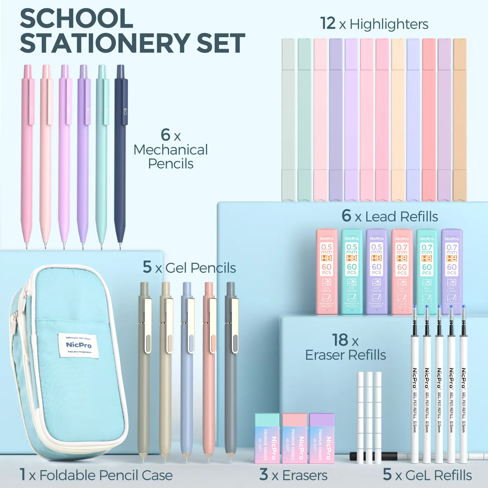 Nicpro 39 PCS Aesthetic School Supplies with Cute Pen Case, 12 Pastel Highlighters, 5 Black Ink Gel Pens, 6 Mechanical Pencils Set 0.5 & 0.7mm for Students Stationary College Essentials (Blue)Nicpro 39 PCS Aesthetic School Supplies with Cute Pen Case, 12 Pastel Highlighters, 5 Black Ink Gel Pens, 6 Mechanical Pencils Set 0.5 & 0.7mm for Students Stationary College Essentials (Blue)Nicpro 39 PCS Aesthetic School Supplies with Cute Pen Case, 12 Pastel Highlighters, 5 Black Ink Gel Pens, 6 Mechanical Pencils Set 0.5 & 0.7mm for Students Stationary College Essentials (Blue)Nicpro 39 PCS Aesthetic School Supplies with Cute Pen Case, 12 Pastel Highlighters, 5 Black Ink Gel Pens, 6 Mechanical Pencils Set 0.5 & 0.7mm for Students Stationary College Essentials (Blue)Nicpro 39 PCS Aesthetic School Supplies with Cute Pen Case, 12 Pastel Highlighters, 5 Black Ink Gel Pens, 6 Mechanical Pencils Set 0.5 & 0.7mm for Students Stationary College Essentials (Blue)Nicpro 39 PCS Aesthetic School Supplies with Cute Pen Case, 12 Pastel Highlighters, 5 Black Ink Gel Pens, 6 Mechanical Pencils Set 0.5 & 0.7mm for Students Stationary College Essentials (Blue)Nicpro 39 PCS Aesthetic School Supplies with Cute Pen Case, 12 Pastel Highlighters, 5 Black Ink Gel Pens, 6 Mechanical Pencils Set 0.5 & 0.7mm for Students Stationary College Essentials (Blue)