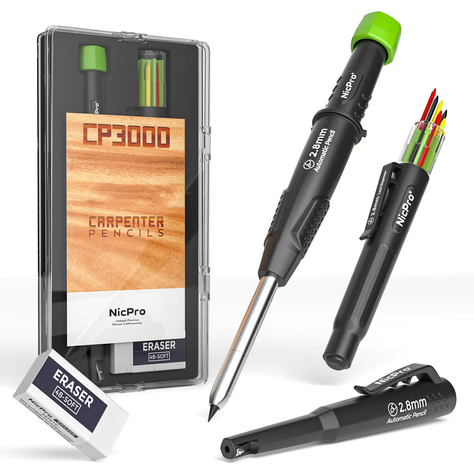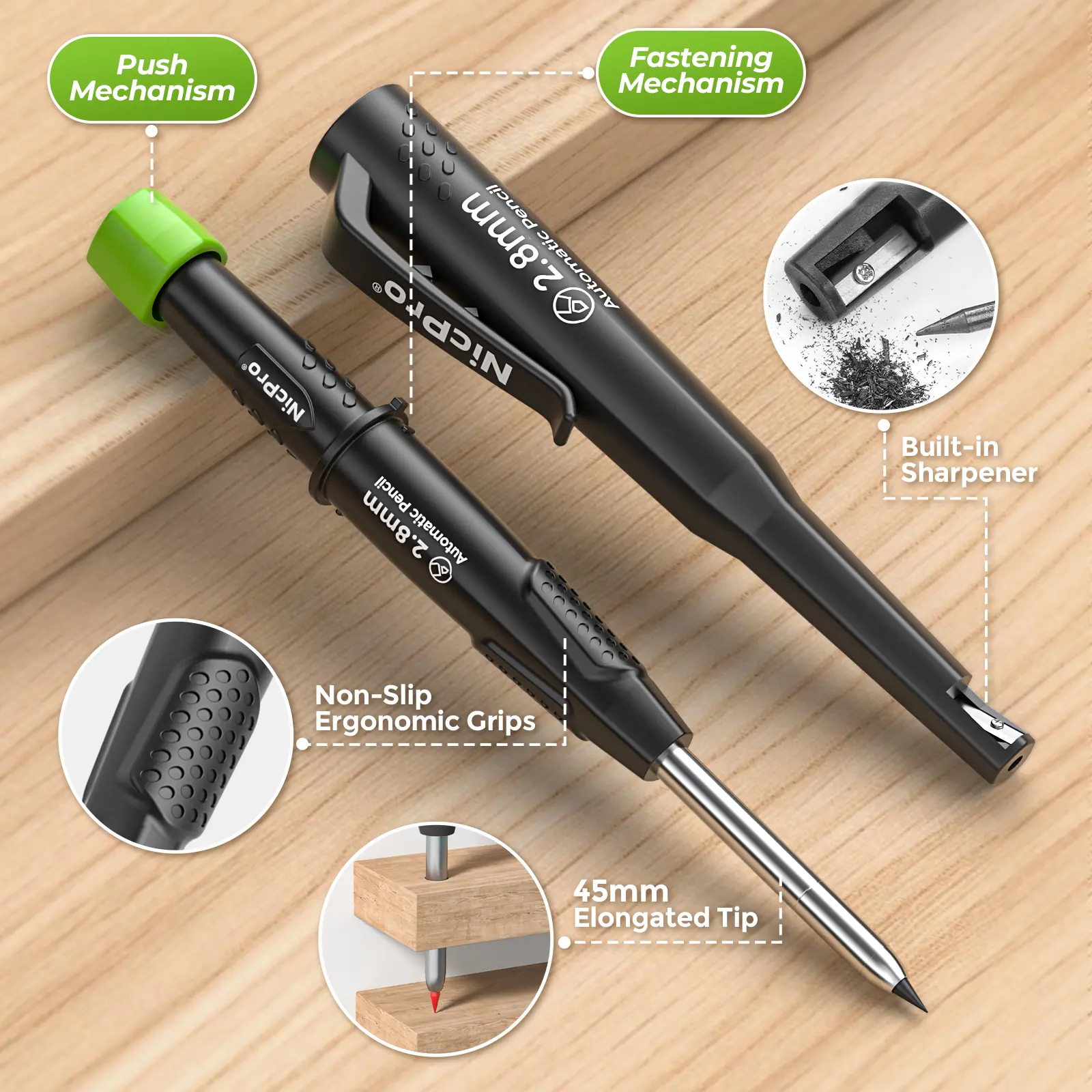 5. Nicpro Carpenter Pencil with Sharpener, CP3000 Construction Pencils with 6 Refills in a Lead Dispenser, Deep Hole Long Nib Marker Pens for Construction, Heavy Duty Carpenter Tools for Woodworking