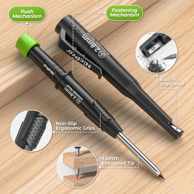·CP3000 Deep Hole Mechanical Pencil – Heavy-duty 2.8mm construction pencil with a 45mm extended tip. Reaches where standard pencils can’t, cutting precise lines in deep holes, joints, and narrow gaps. Built for framing, cabinetry, masonry, and electrical work—fast, sharp, and reliable.