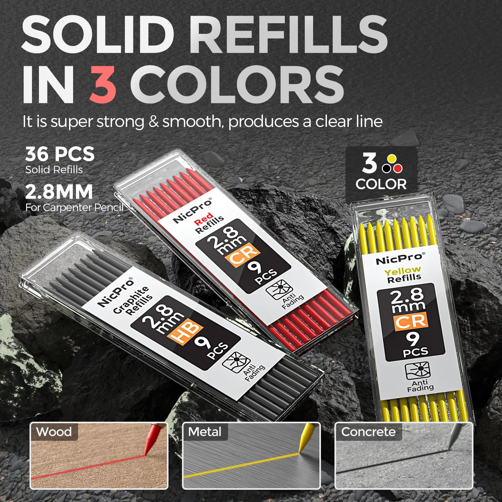 ·Marks on Various Surfaces: This work pencil is matched with a 2.8 mm thick color lead, It can mark on a variety of surfaces, including rough, smooth, dry, and wet materials like wood, metal, plastic, and concrete. Making it a standout choice for woodworkers, electricians, and other tradespeople