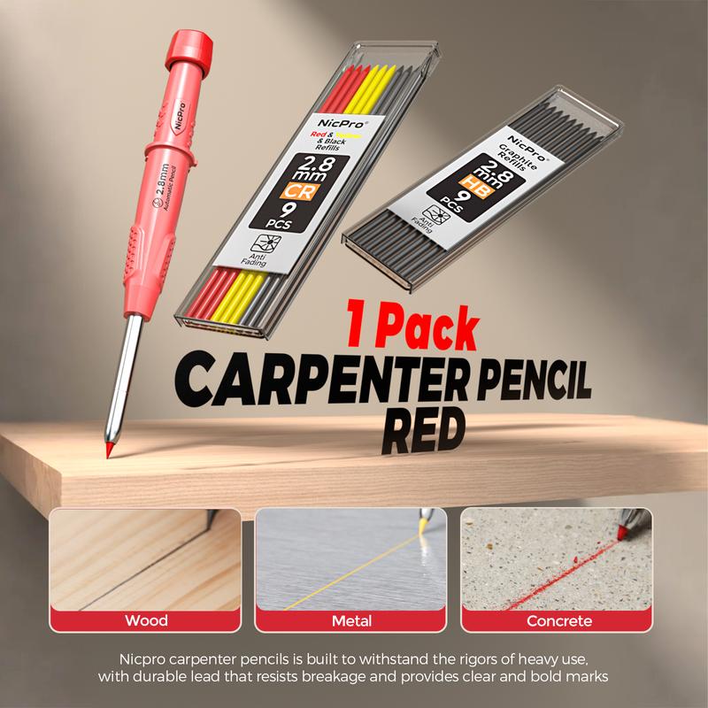 ·Complete Marking Kit – No Extras Needed: Includes a CP3000 carpenter pencil, 18 refill leads (red, yellow, black), and an eraser—covering bold, high-visibility lines and precise deep marks on wood, metal, and concrete. A true all-in-one addition to your woodworking tools and accessories.