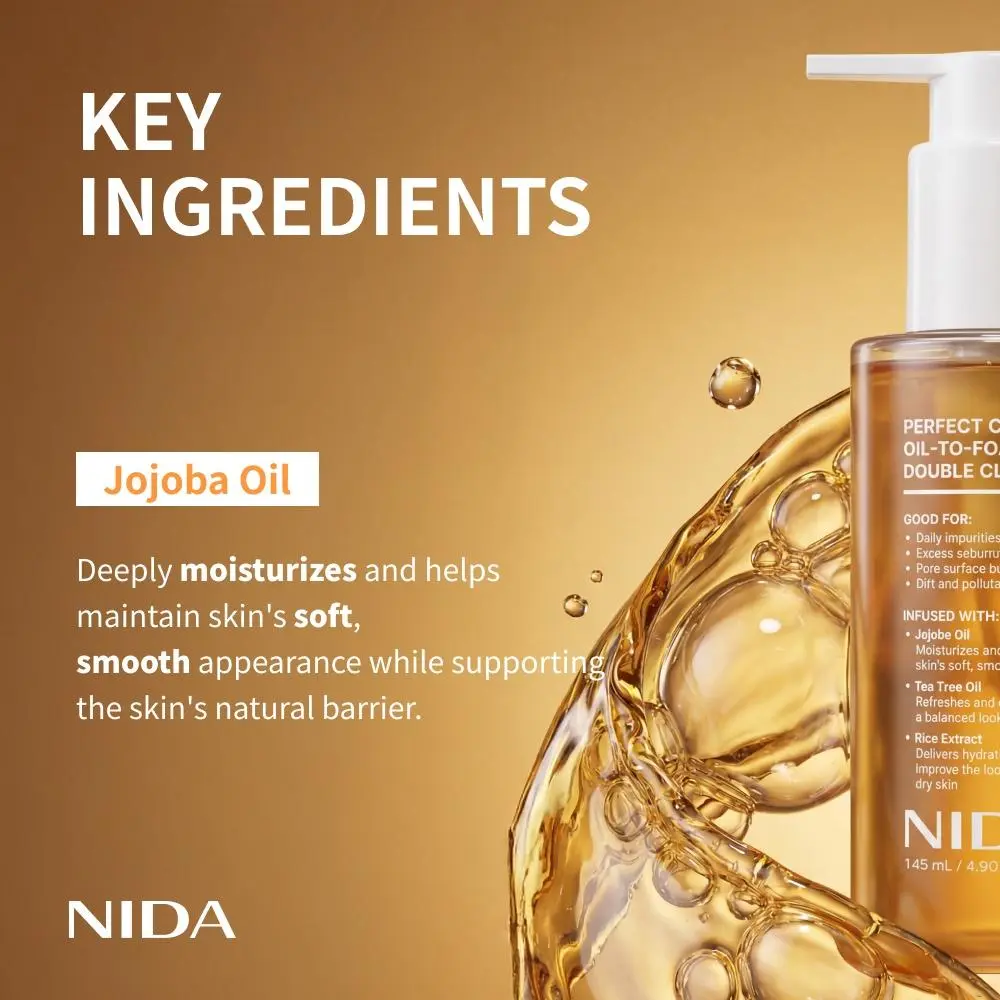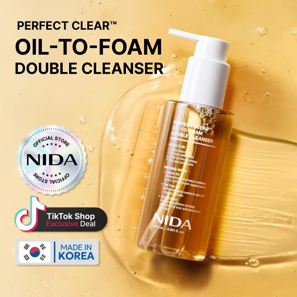 Say goodbye to complicated double cleansing routines. With the NIDA Perfect Clear Oil-to-Foam Cleanser, experience the magic of a complete cleanse in just one step—makeup melts away, pores feel purified, and skin glows!