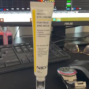 NIDA Revive Eye Cream for Face and Neck is expertly formulated to help improve the appearance of the delicate skin around the eyes, face, and neck. This advanced cream hydrates and smooths, helping to visibly reduce the look of dark circles, fine lines, and uneven skin tone. With regular use, skin may appear more refreshed, radiant, and supple.