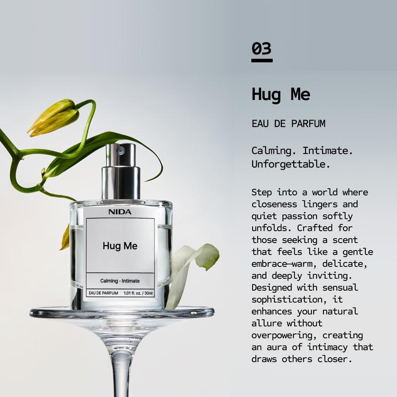Step into a world where closeness lingers and quiet passion softly unfolds. NIDA “HUG ME” Eau de Parfum is crafted for those seeking a scent that feels like a gentle embrace—warm, delicate, and deeply inviting. Designed with sensual sophistication, it enhances your natural allure without overpowering, creating an aura of intimacy that draws others closer.