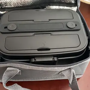 The lunch box holds 1.8 liters, suitable for 1-2 people. It includes a carrying bag for easy transport. The 80W power supply operates on 12V/24V/110V, making it versatile for any location. This modern lunch box combines functionality with a stylish appearance.