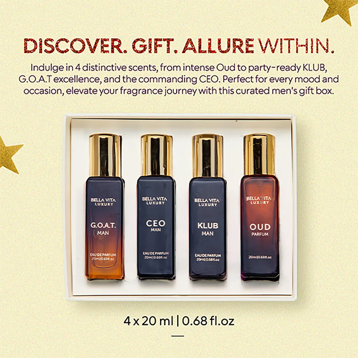 Night Fever Mafia by BellaVita Luxury | Perfume Combo Gift Set | 100 ml + Men’s Gift Set 4×20 ml | Night Fever, Oud Parfum, Klub Man, GOAT Man & CEO Man | Long Lasting Eau De Parfum | Vegan & Cruelty Free