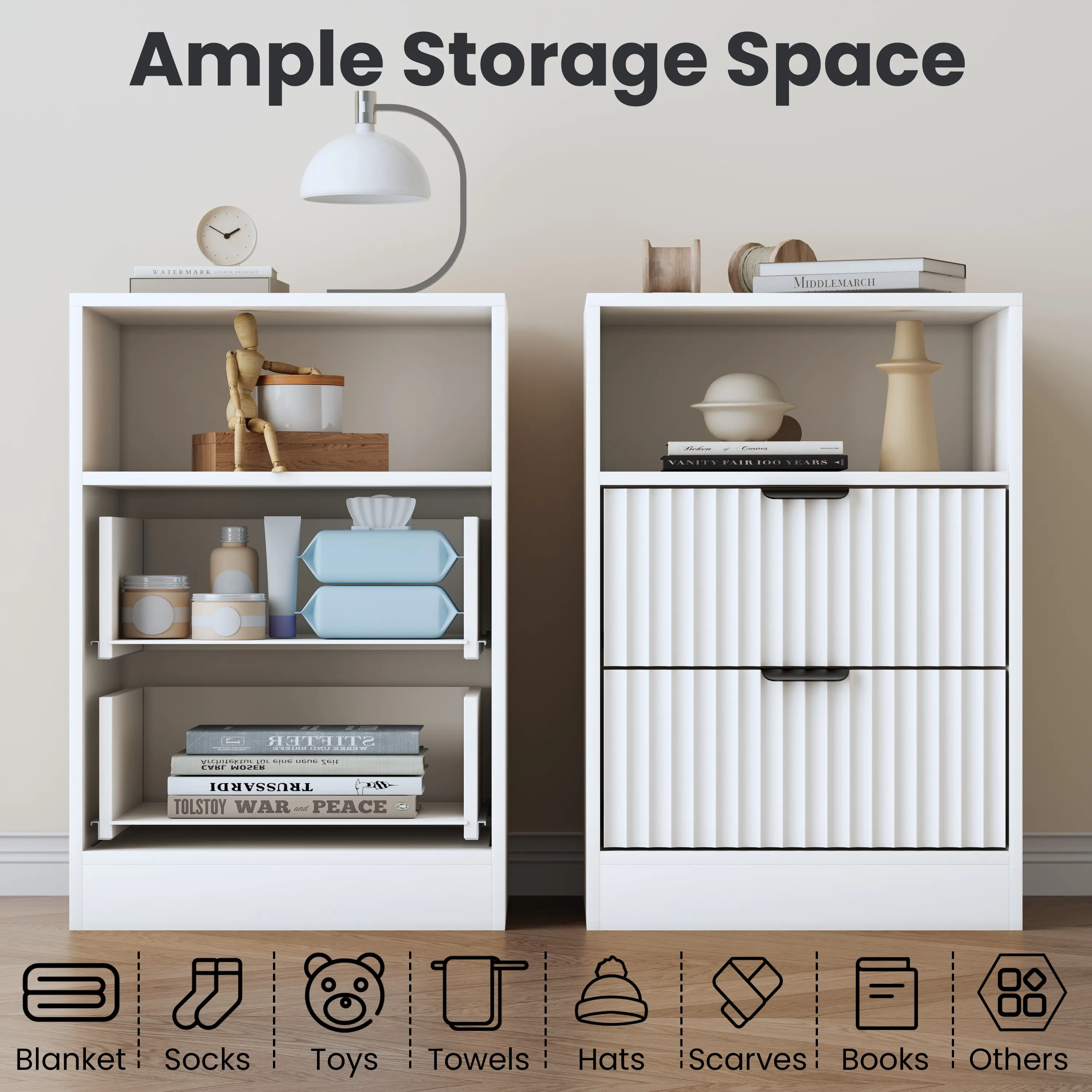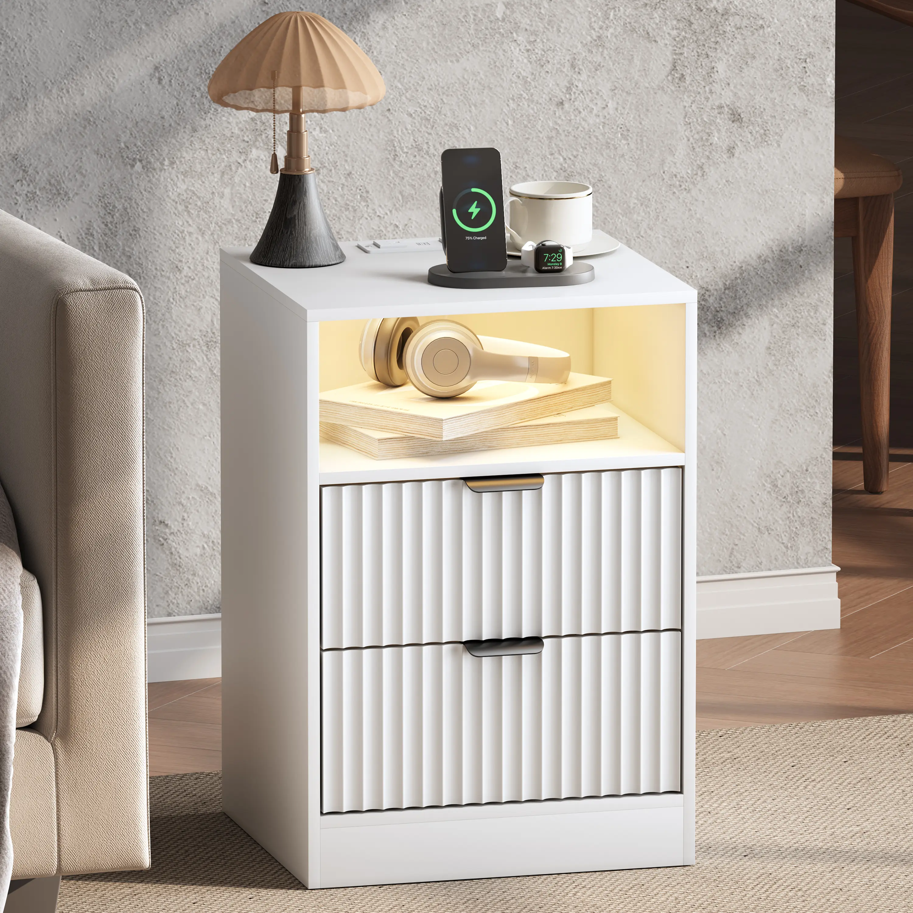 ·【Elegant Fluted Night Stand】The bedside table boasts a minimalist wave groove design with elegant metal handles, adding a touch of elegance and stylish to your home, perfectly matching contemporary, farmhouse,mid century moden, and bohemian various decor styles.