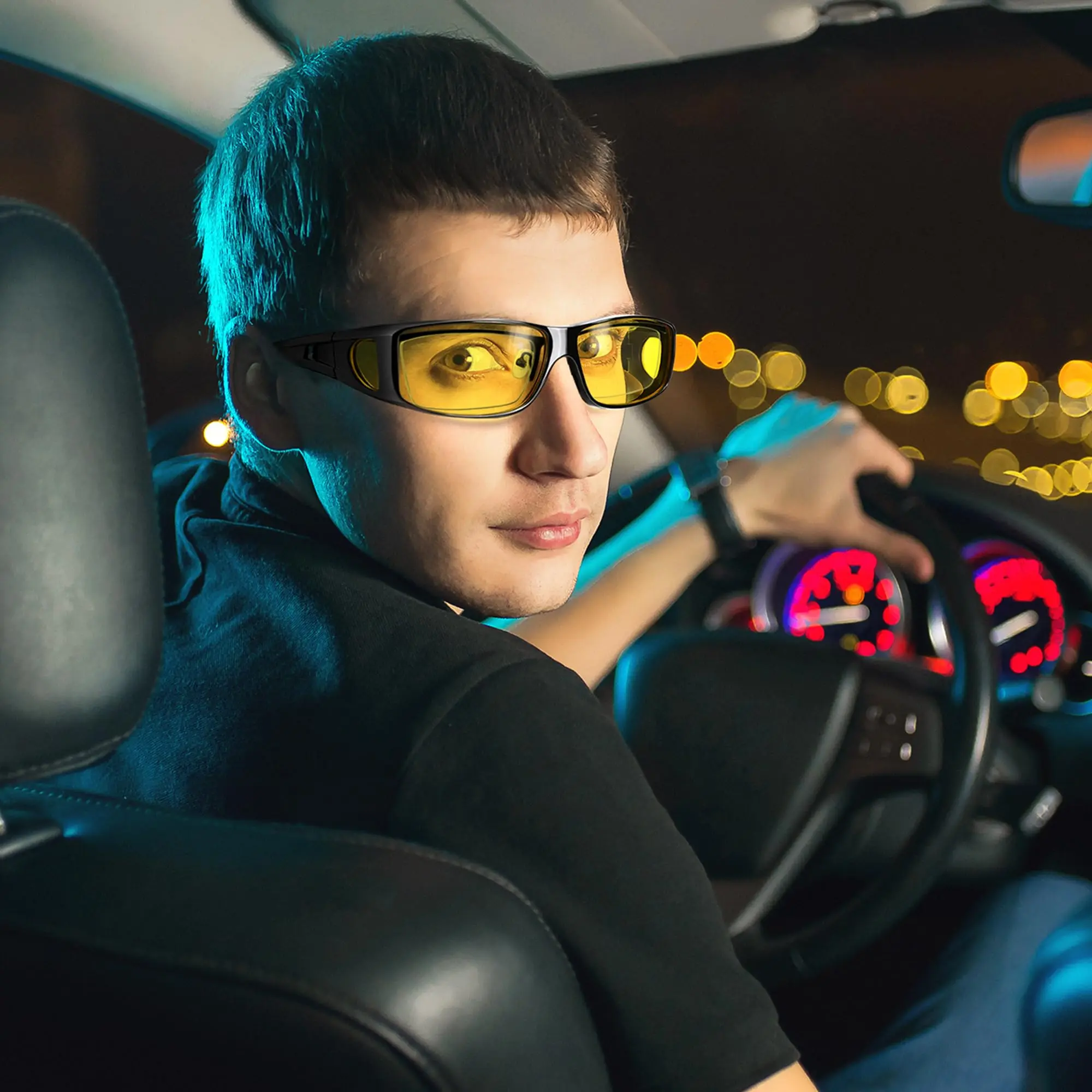 ·FIT OVER GLASSES: These night driving glasses are specially designed for those who wear prescription glasses and can be easily worn on existing nearsighted/reading glasses, contact lens wearers or people with normal vision can also wear them alone