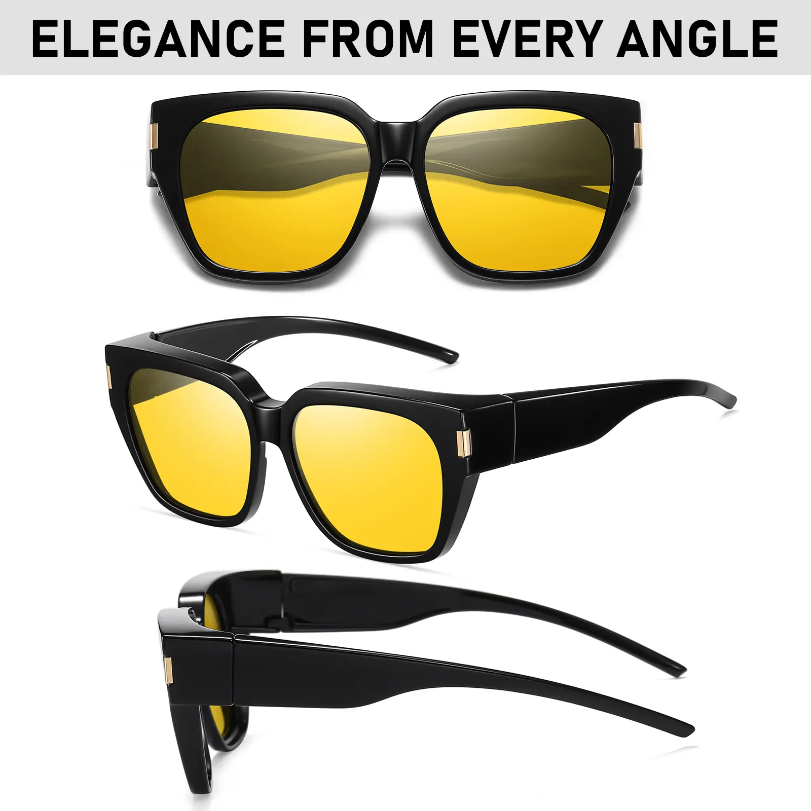 Elevate your night vision with the HAOLOTA Night Vision Glasses. These glasses fit over your existing eyewear, offering polarized anti-glare protection. The yellow tinted lenses ensure clear, high-definition visibility in low light. Perfect for both men and women, these glasses enhance your experience without compromising comfort.