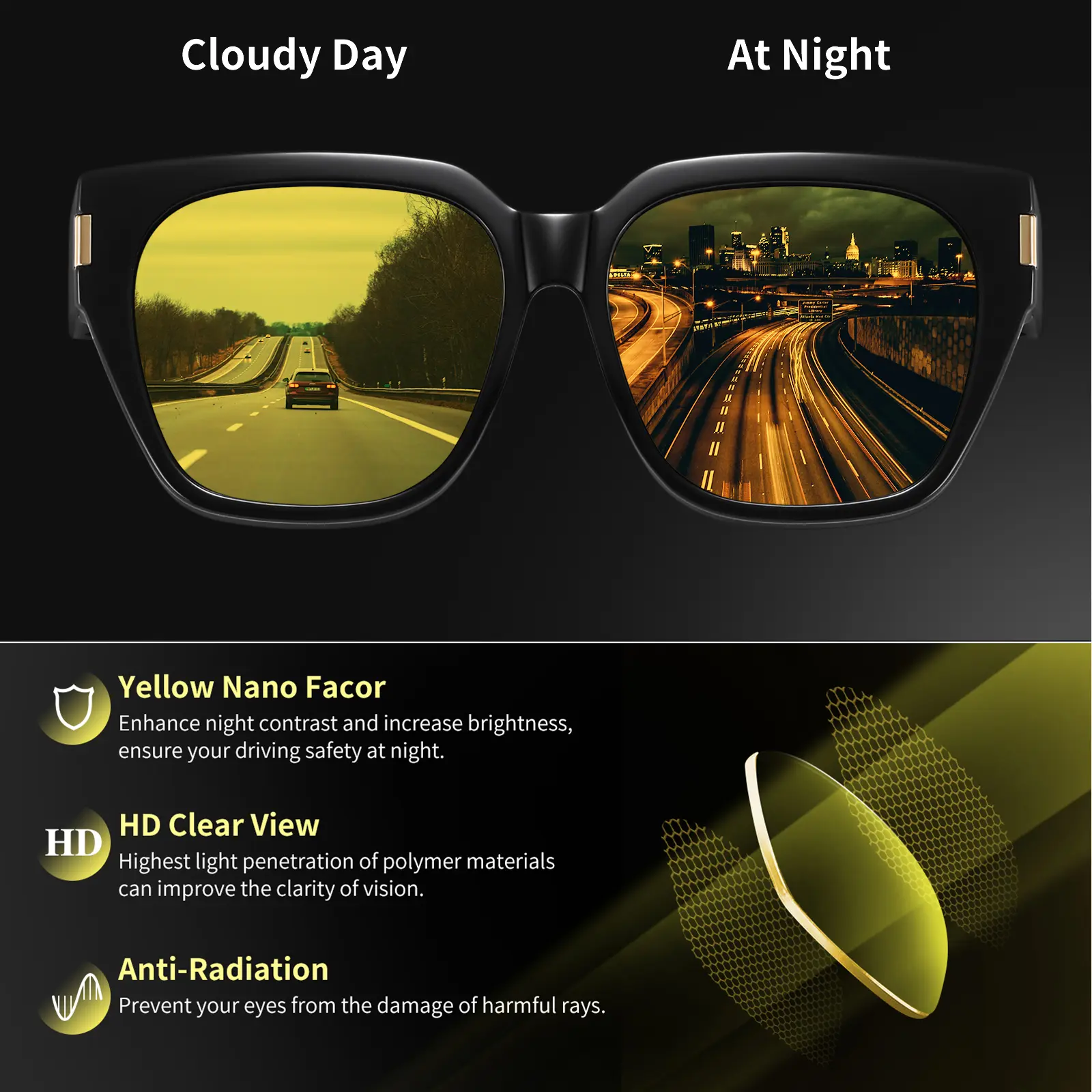 ·Yellow Tinted Lenses: Provide HD clarity in darkness.