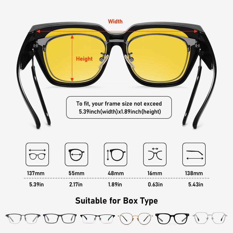 These did not help with night vision, or on coming head lights, at all. My vision was just yellow! I could not see curbs any different!! The frame is nice it does go over a pair of glasses and sits comfortably.