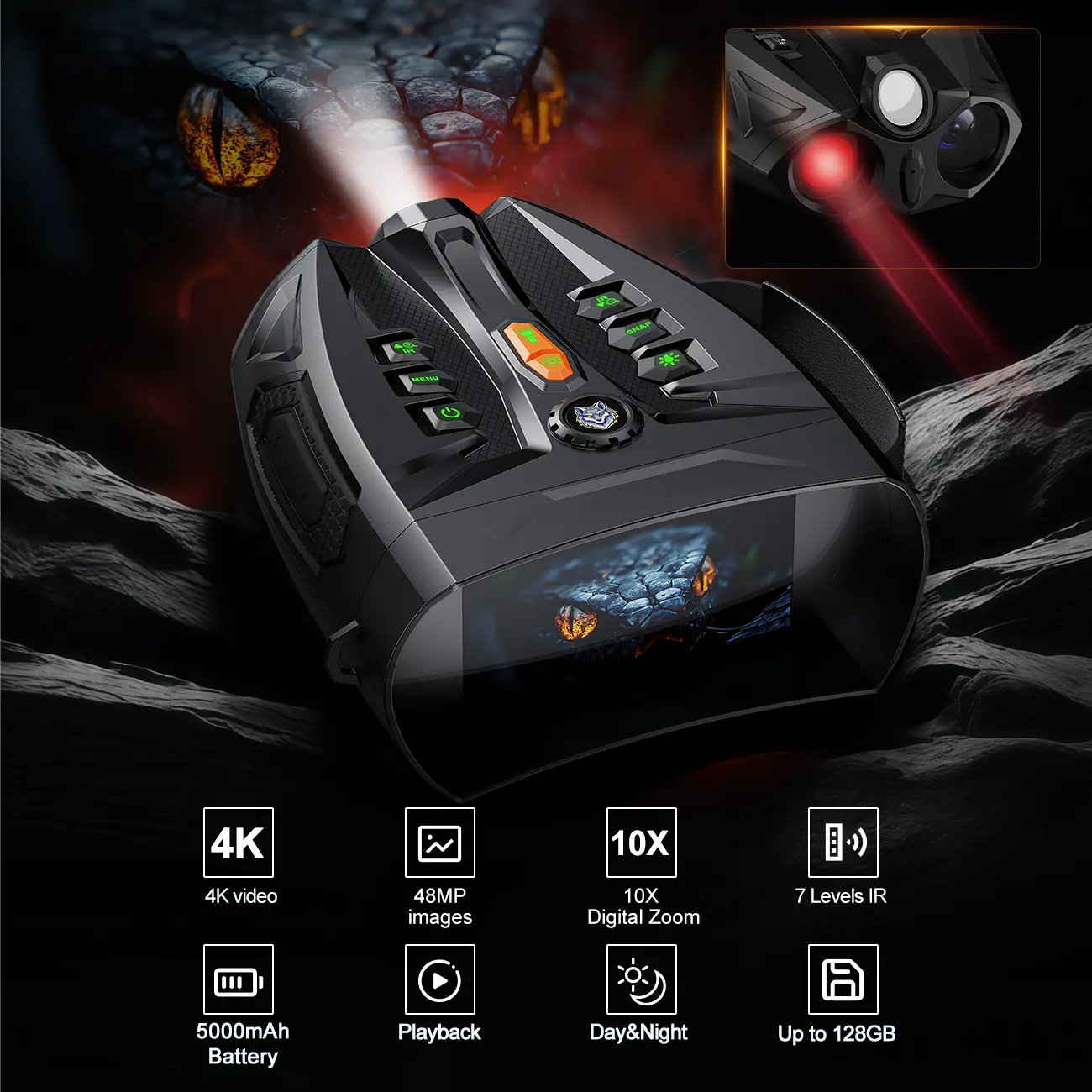 [Clearly See in Darkness]:4K HD Videos & 48MP Images,the NiteHawk night vision goggles can take photos, record a video and playback, you can capture high definition photos & videos with its outstanding optical clarity in the daytime, low light, or night time