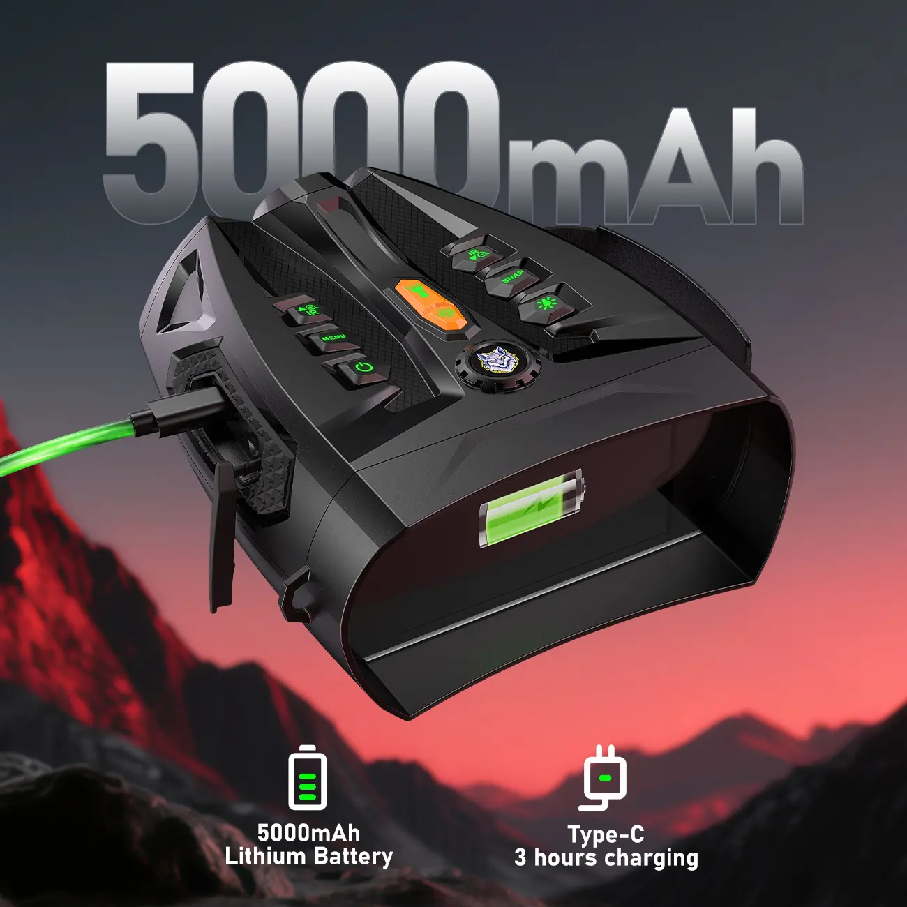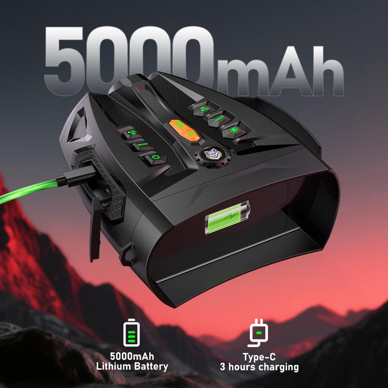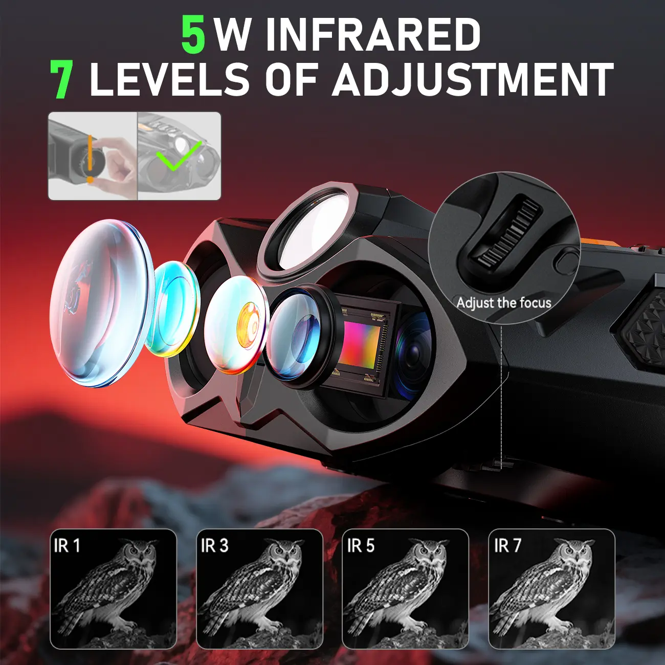 [Rechargeable Lithium Battery]: Built-in a Li-ion rechargeable cell of 5000mAh. The Infrared high-tech night vision binoculars feature an 850 NM infrared illuminator which allows you to view animals in pitch dark for hours