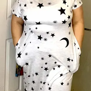This dress is so comfy and too cute, love the pockets and length. Will be getting more, too cute for cleaning and house wear. 💜