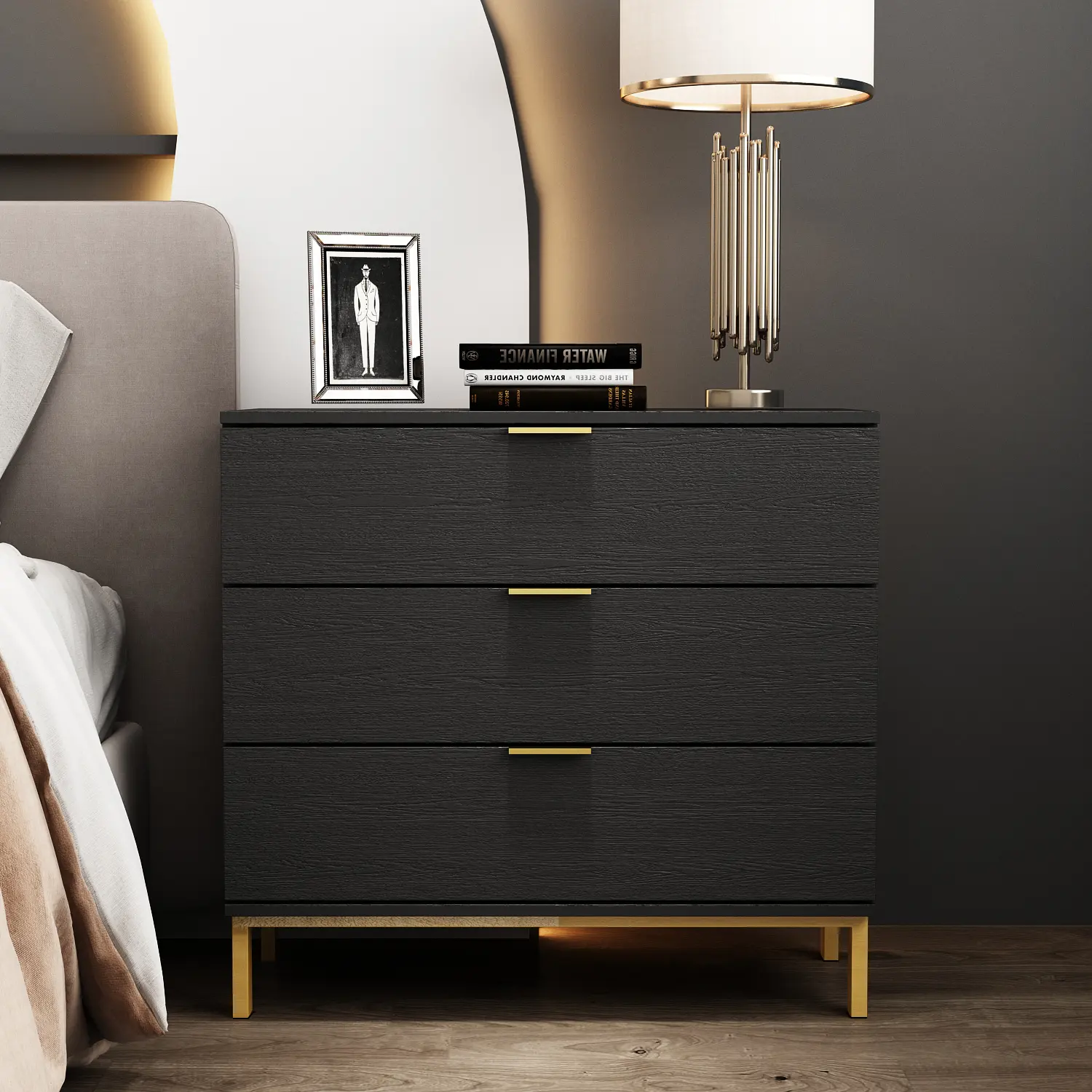 [Large Nightstand] - The black and gold nightstand features 3 spacious drawers, allowing to well organized your stuff. The 29.7 inch height would not lead it to unfit your bedroom. The comfortable color combination and wood grain surface makes it really attractive for your bedroom or living room.