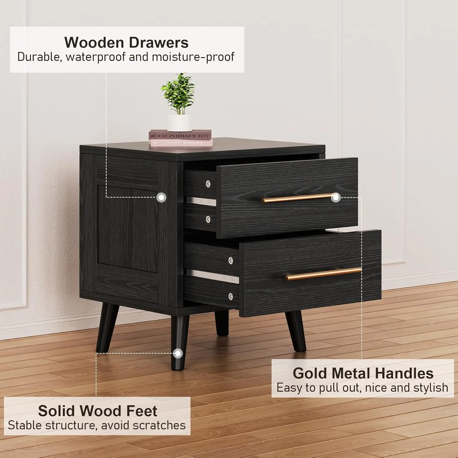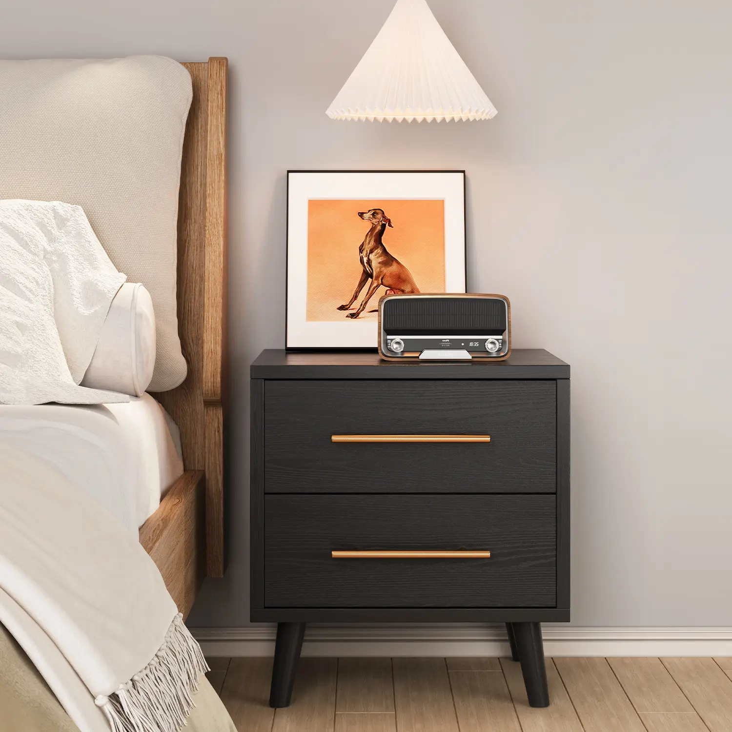 Descent quality nightstand. Good for small size room. Drawers are not super spacious but will work for my daughter’s room.