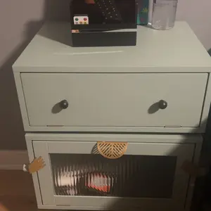 【360° Rotating Drawer & Ample Storage】360° silent rotating top drawer for easy bi-directional access. The spacious lower drawer features a smooth metal-hinged door that opens effortlessly. Additionally, the pull-down design enhances safety, especially for children.