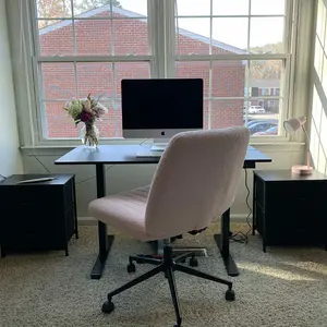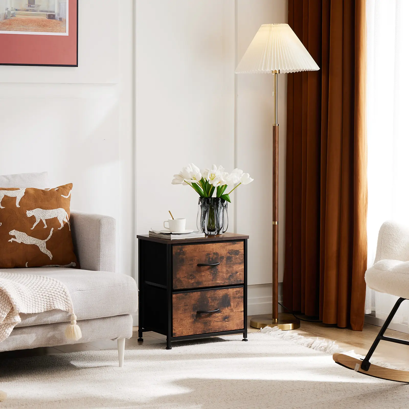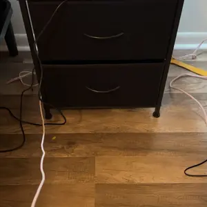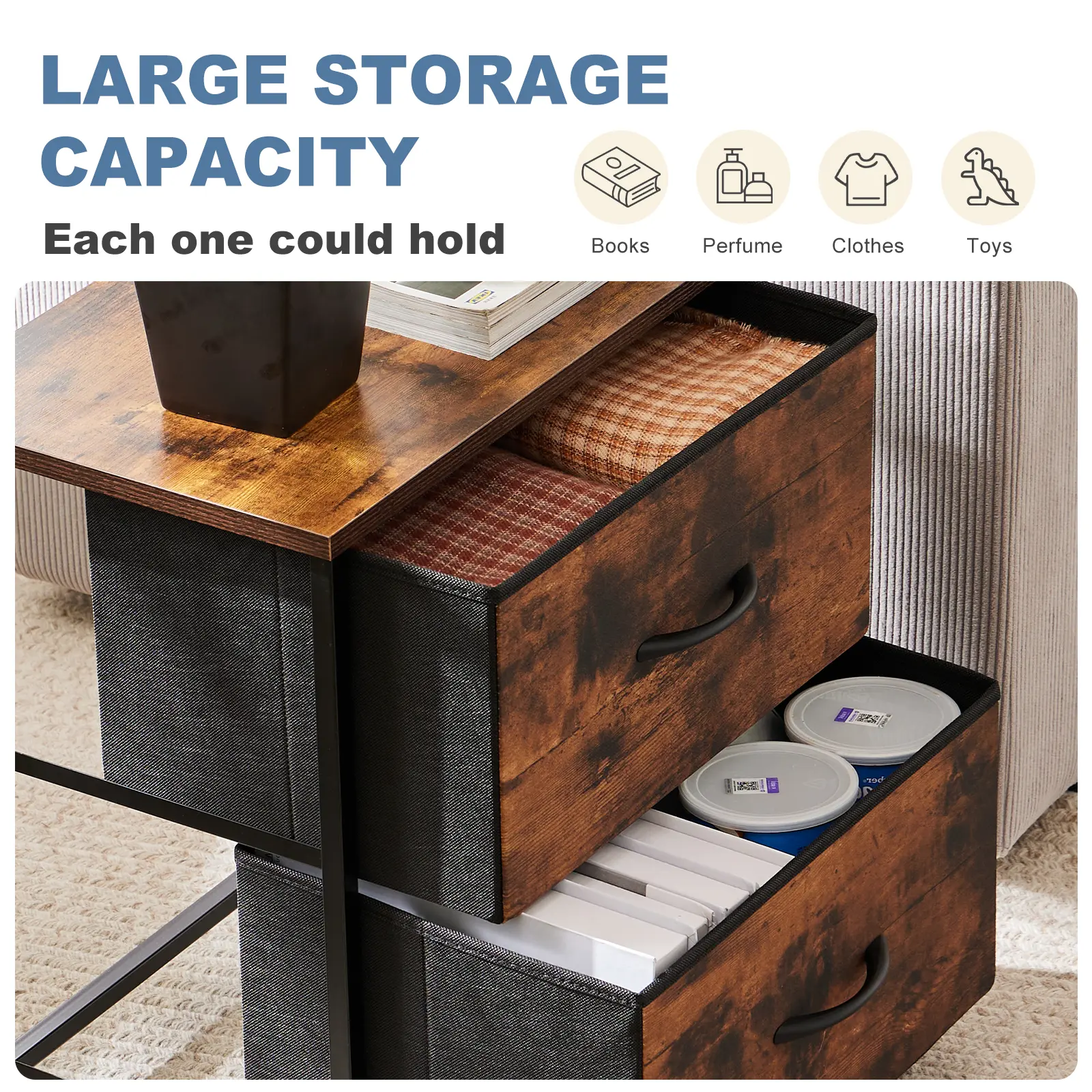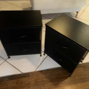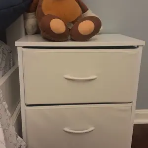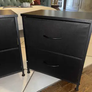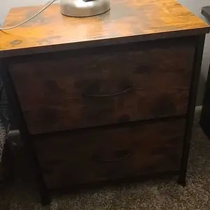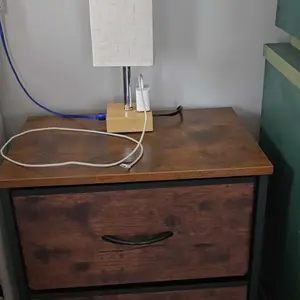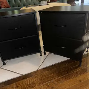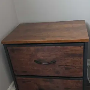 I purchased this as a side table by the bed but unfortunately it is a little low compared to my bed height. Besides the size of the height of the table and my bed, it is good quality for the money and easy to put together. The cloth drawers are sturdy and hold a good bit of stuff in it.