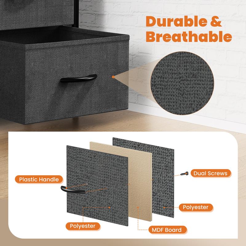 ● SPACIOUS STORAGE: The 2 fabric drawers of the small dresser offer large storage space for nighttime necessities. The wood top is ideal to place alarm clock, phone, charger, eyeglasses, keeping them in your reach.