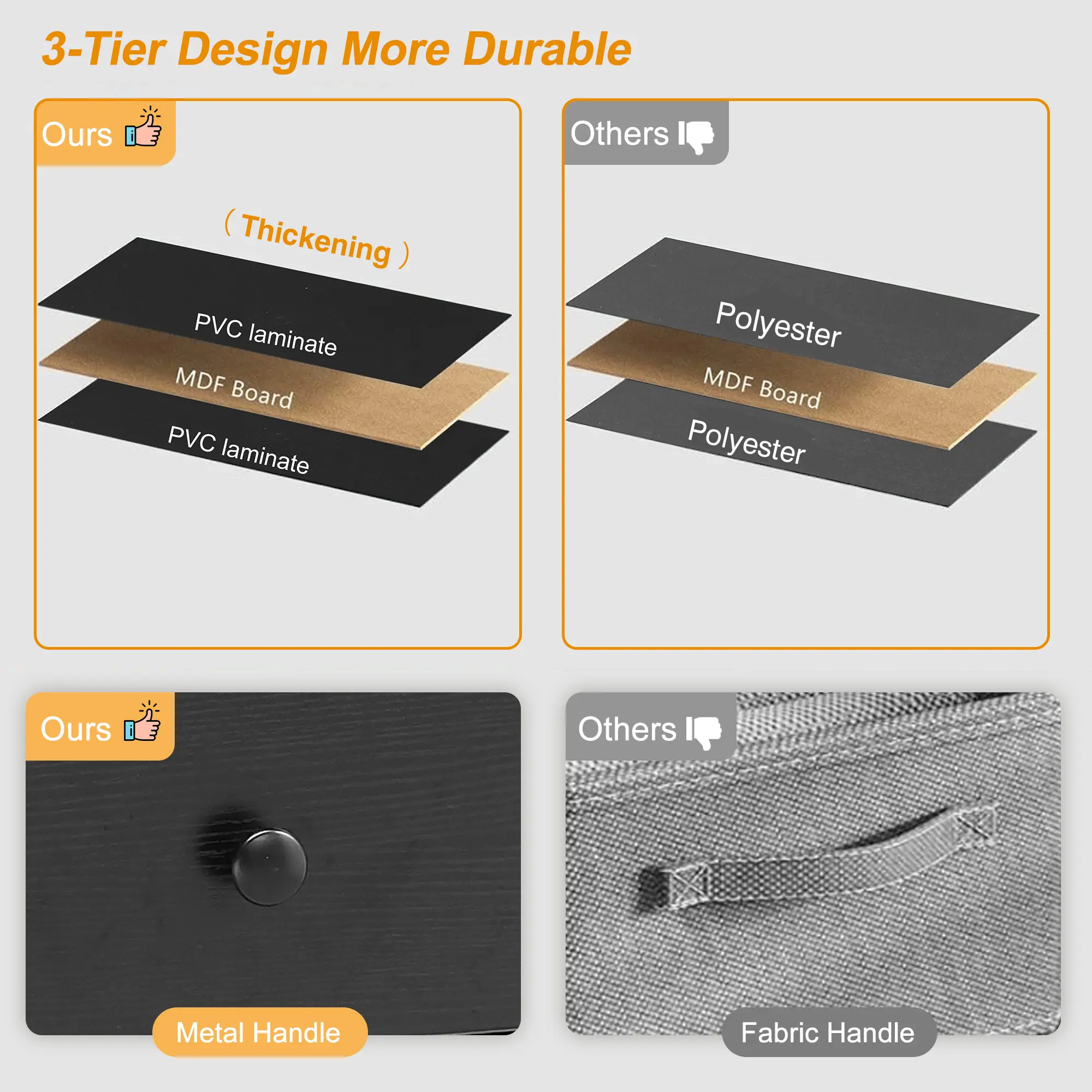 ·【Reinforced and Durable】: Our bedside tables are made of more materials and thickened design. Compared with the polyester fiber and MDF board bedside tables on the market for cost saving, our bedside tables combine the advantages of PVC nanofiber and MDF board. Therefore, our MDF board is durable, strong and stable, providing solid support and structure for the bedside table.