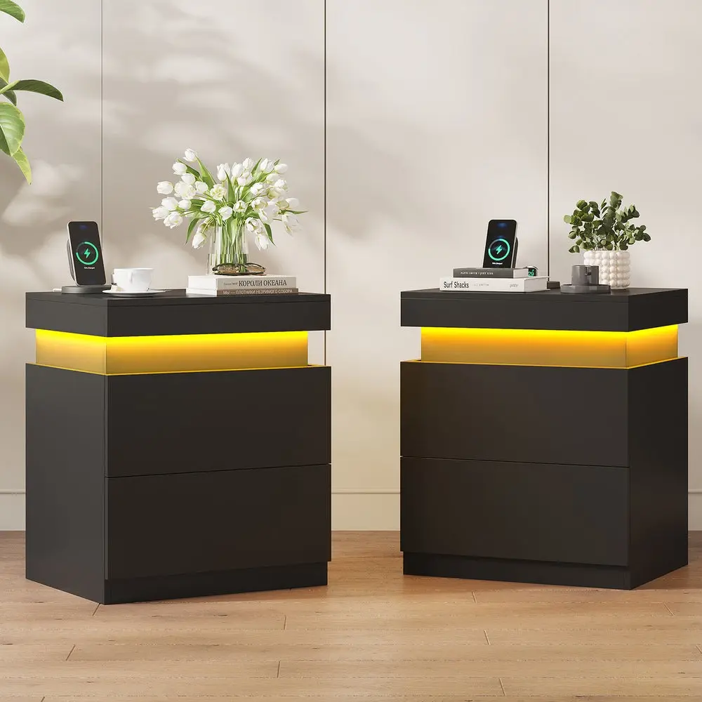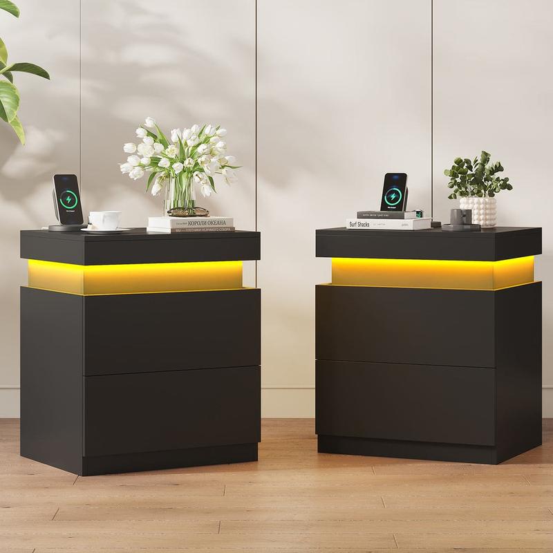 Night Stand with Charging Station & LED Light