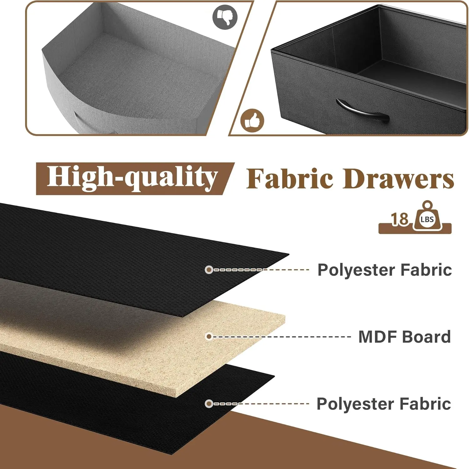 ·【Solid & Easy Pull-out Drawers】One thing to notice is the drawers of the nightstands set of 2 are constructed of fabric. They are made of heavy-duty woven cloth, and equipt with hard bottom inserts that give them structure.