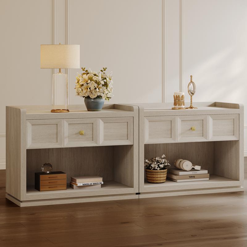 ·【Thoughtful Safety Features】: Our night stand is thoughtfully designed with safety in mind. The surrounding raised edges can prevent items from falling off. Moreover, the round corners are crafted to safeguard you and your family from accidental bumps and bruises.