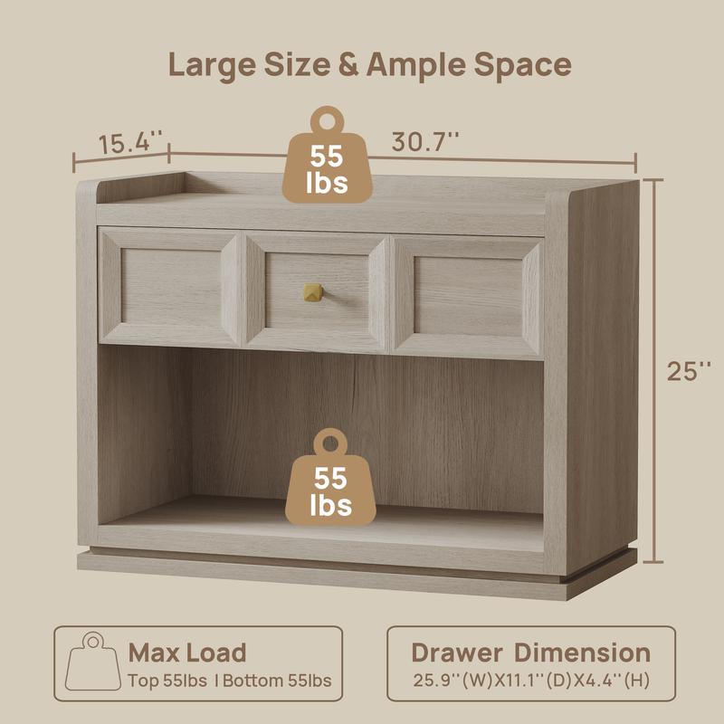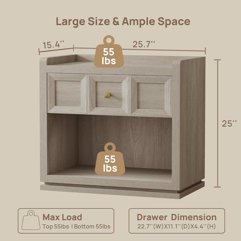 ·【Available in Two Large Sizes】: We offer two great size options - 26” and 30” Wide. No matter if you have a king or queen size bed, this large nightstand is the ideal companion. Spacious enough to hold all your nighttime necessities without occupying excessive space!