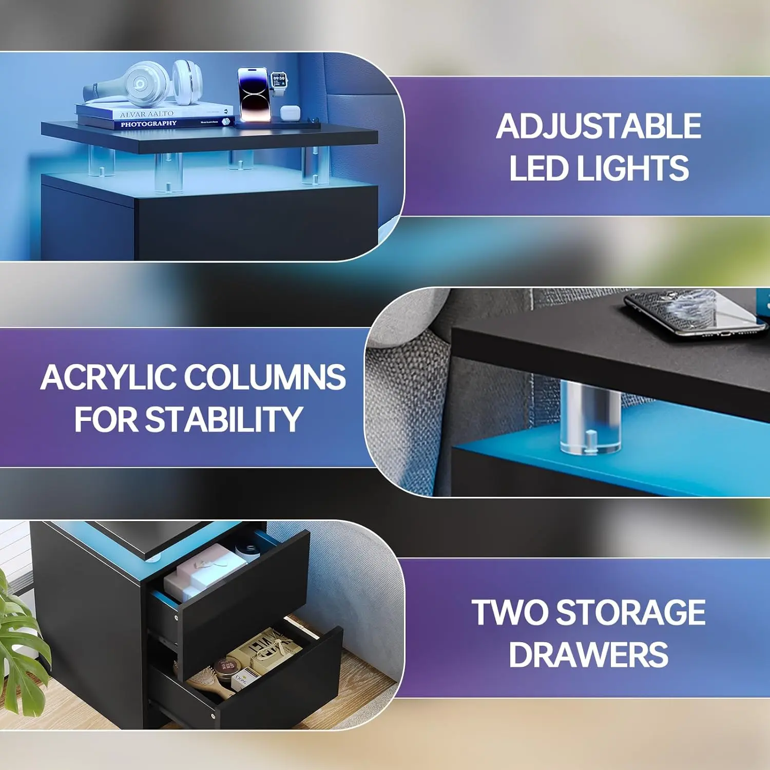·LED Lighting: Equipped with LED lights, these nightstands provide soft, ambient lighting. 🌟