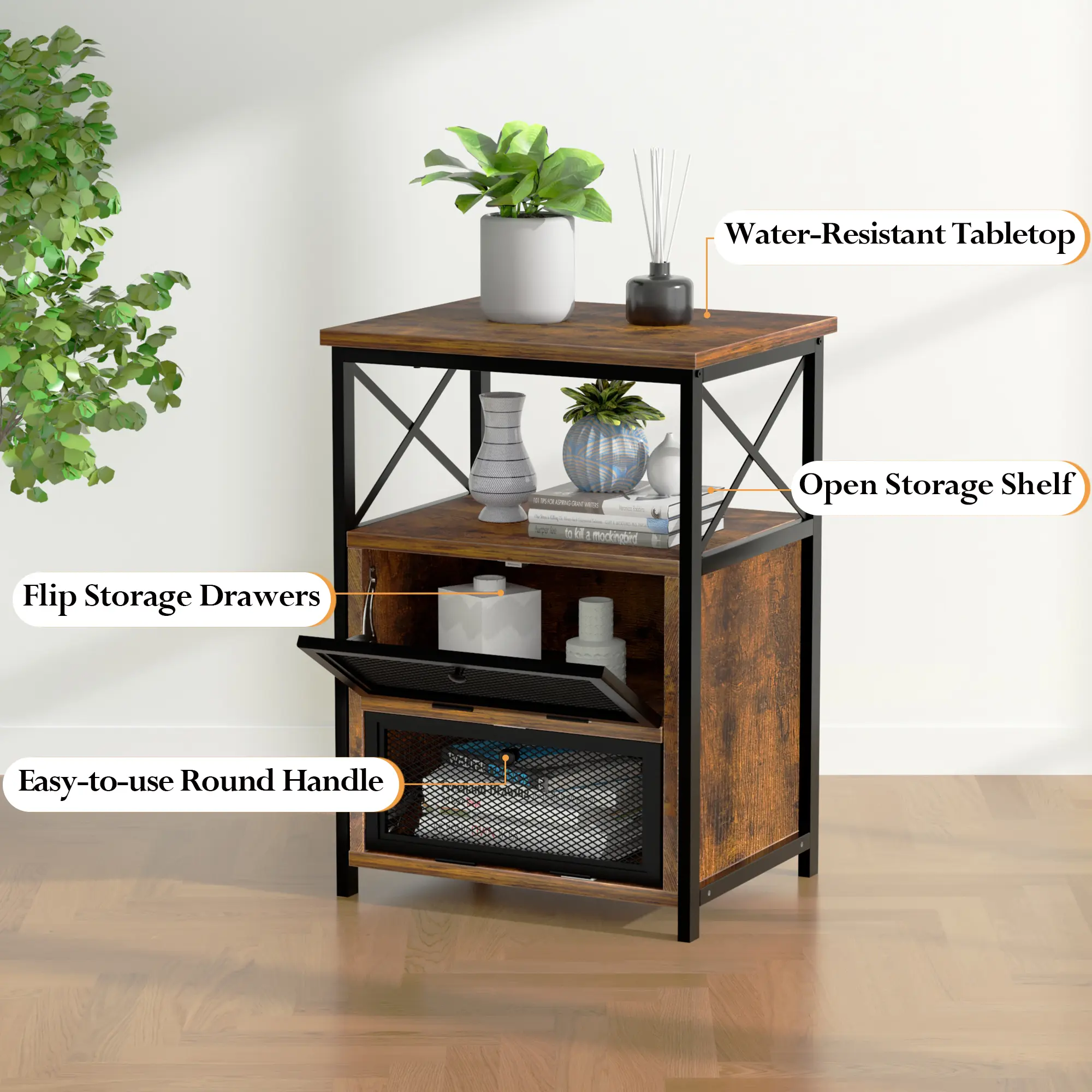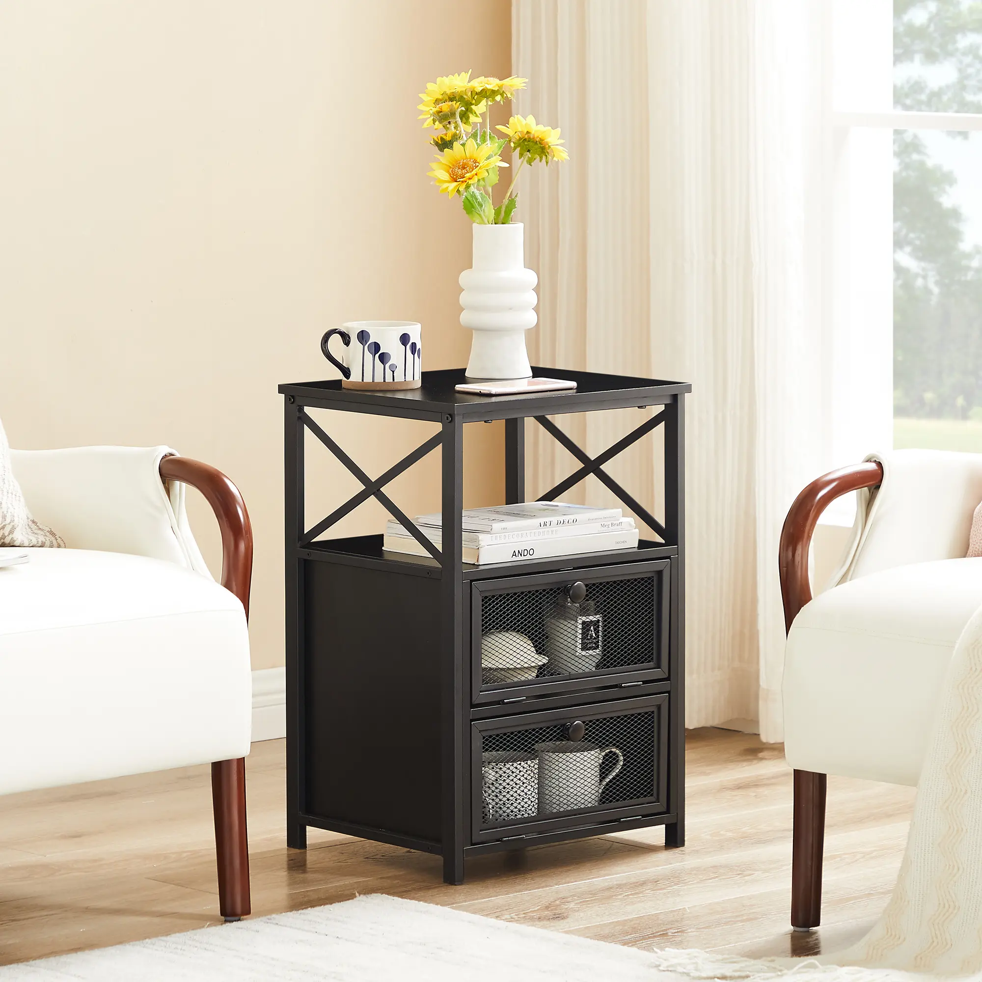 【Turn Over Drawers】This bedside table comes with two overturn drawers, which can provide more storage space. The unique design will also make your room more bright.